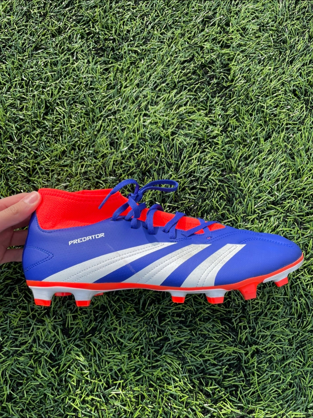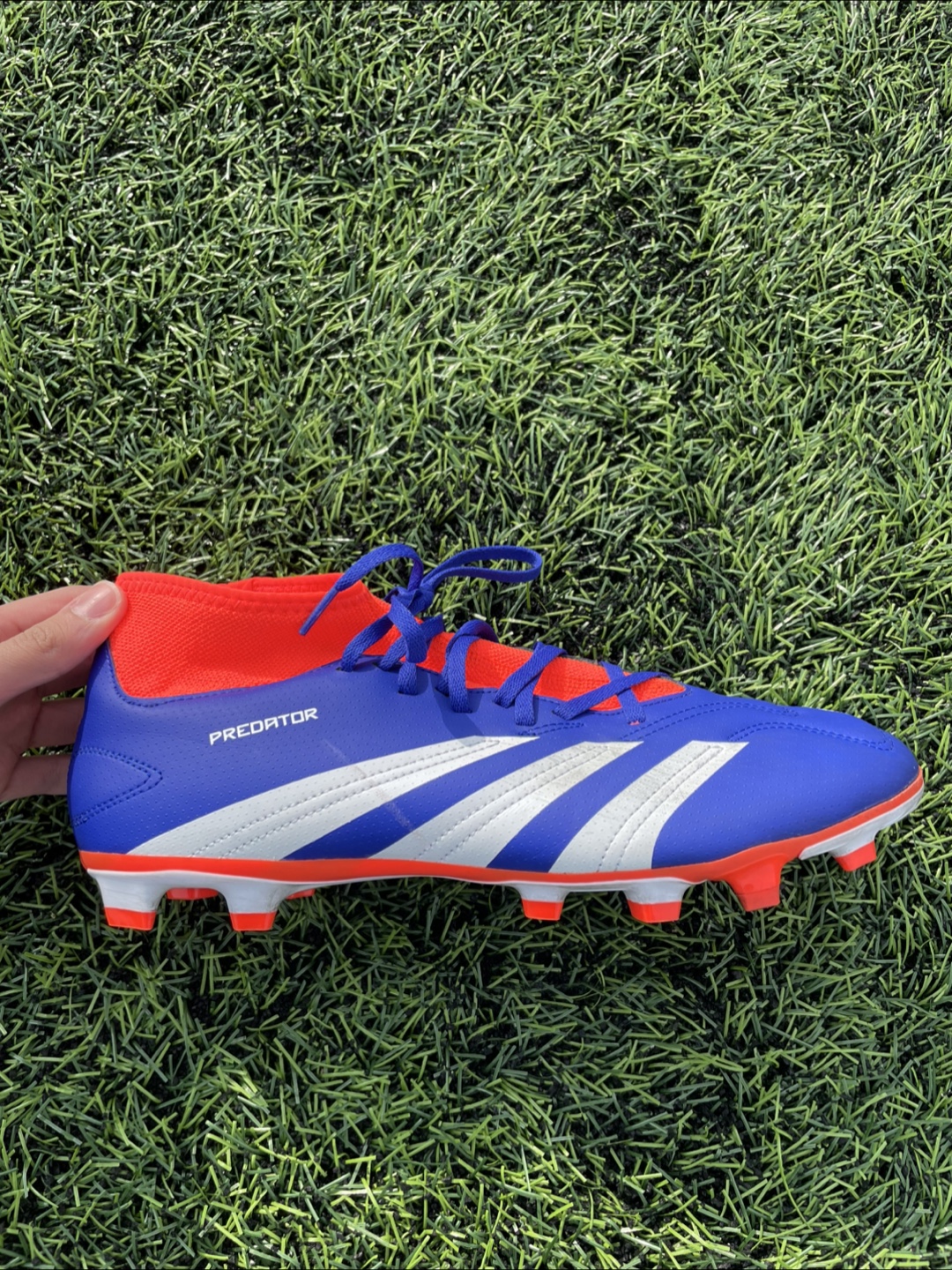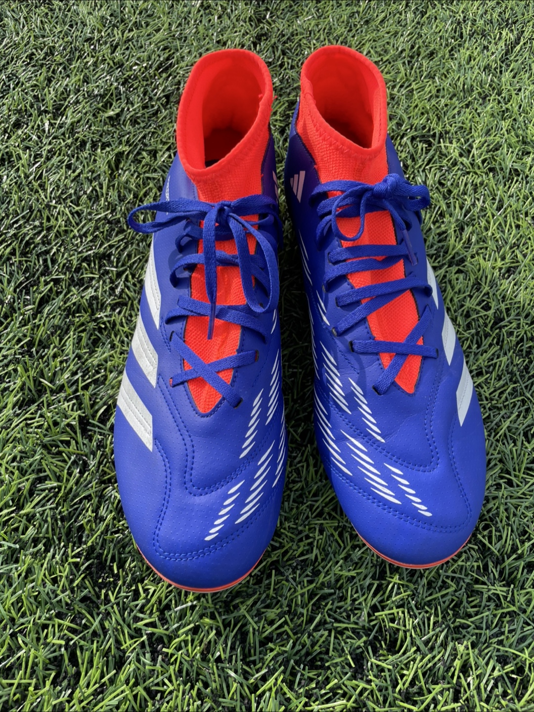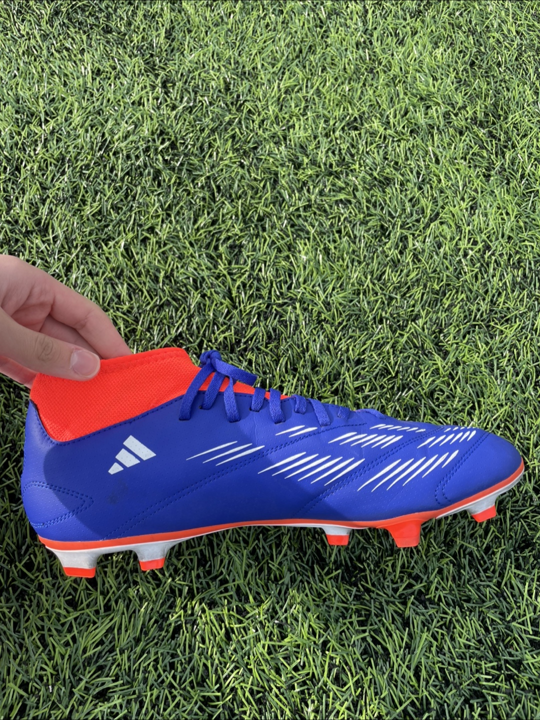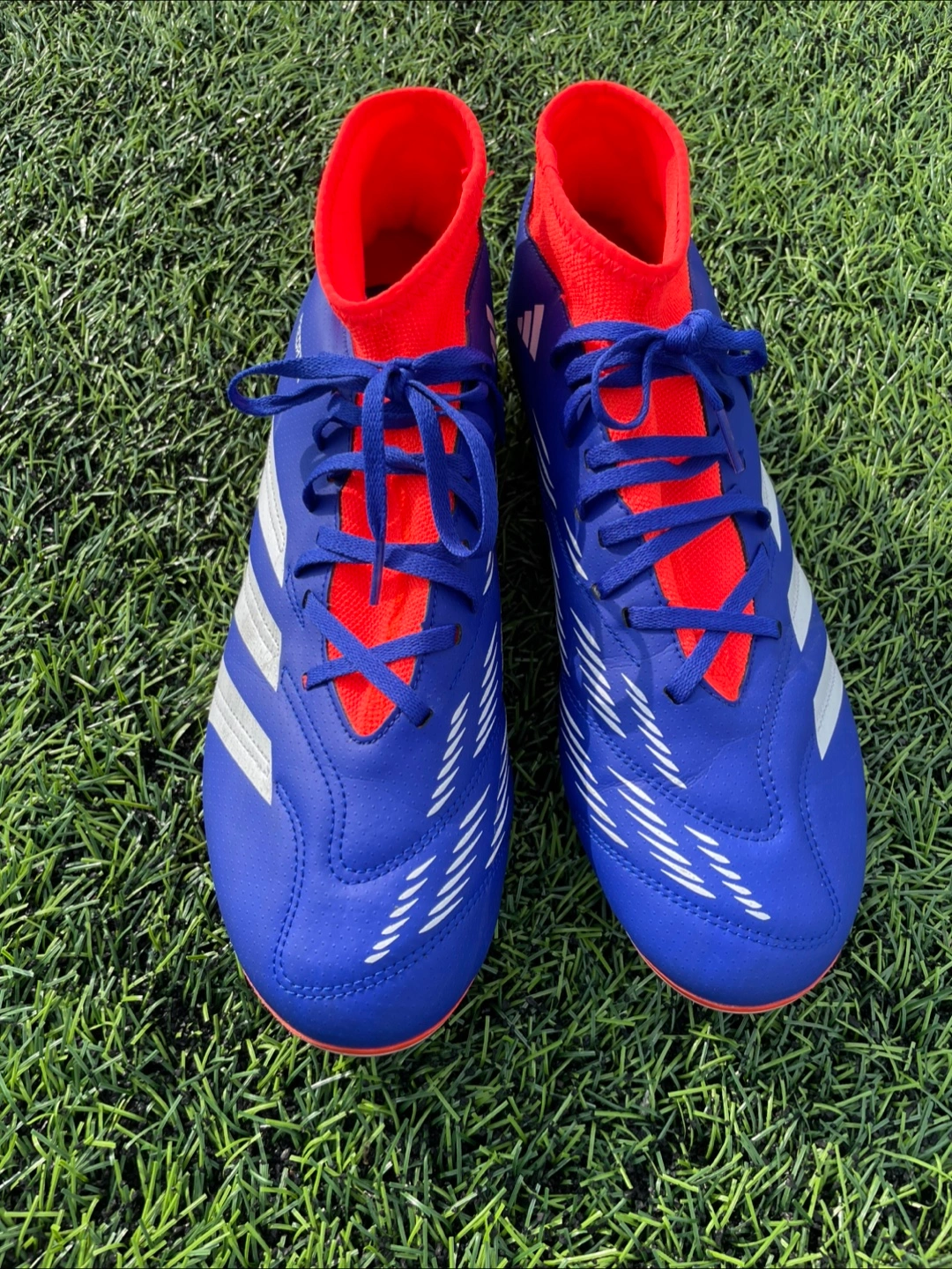 Selling a pair of Adidas Predator soccer cleats in blue and orange. They are in great condition, worn once (they were too big) ready for the field!