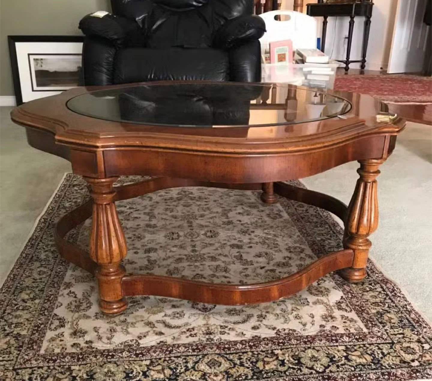Selling a lovely Gordon's coffee table with a glass top! It's a beautiful piece of fine furniture made by Gordon's of Johnson City, Tennessee. The wood has a rich, warm tone that would complement any living room setup