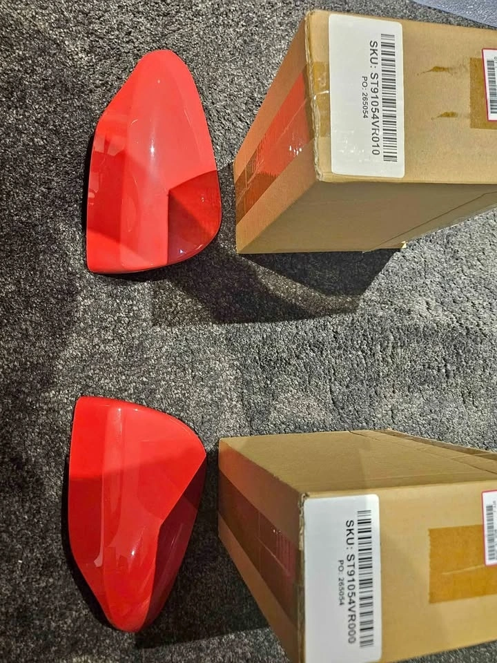 Genuine STI Cherry Red mirror covers for Subaru WRX 2022+ (VB).
