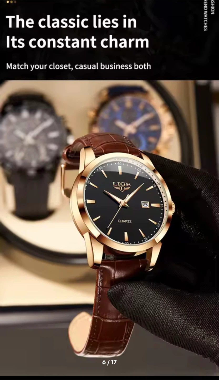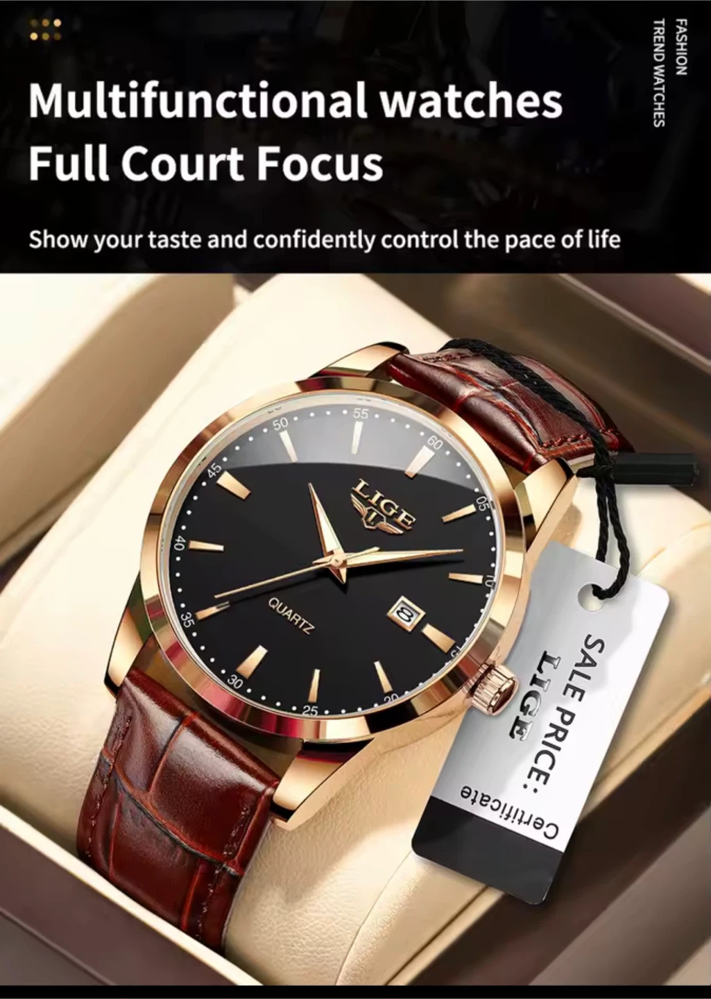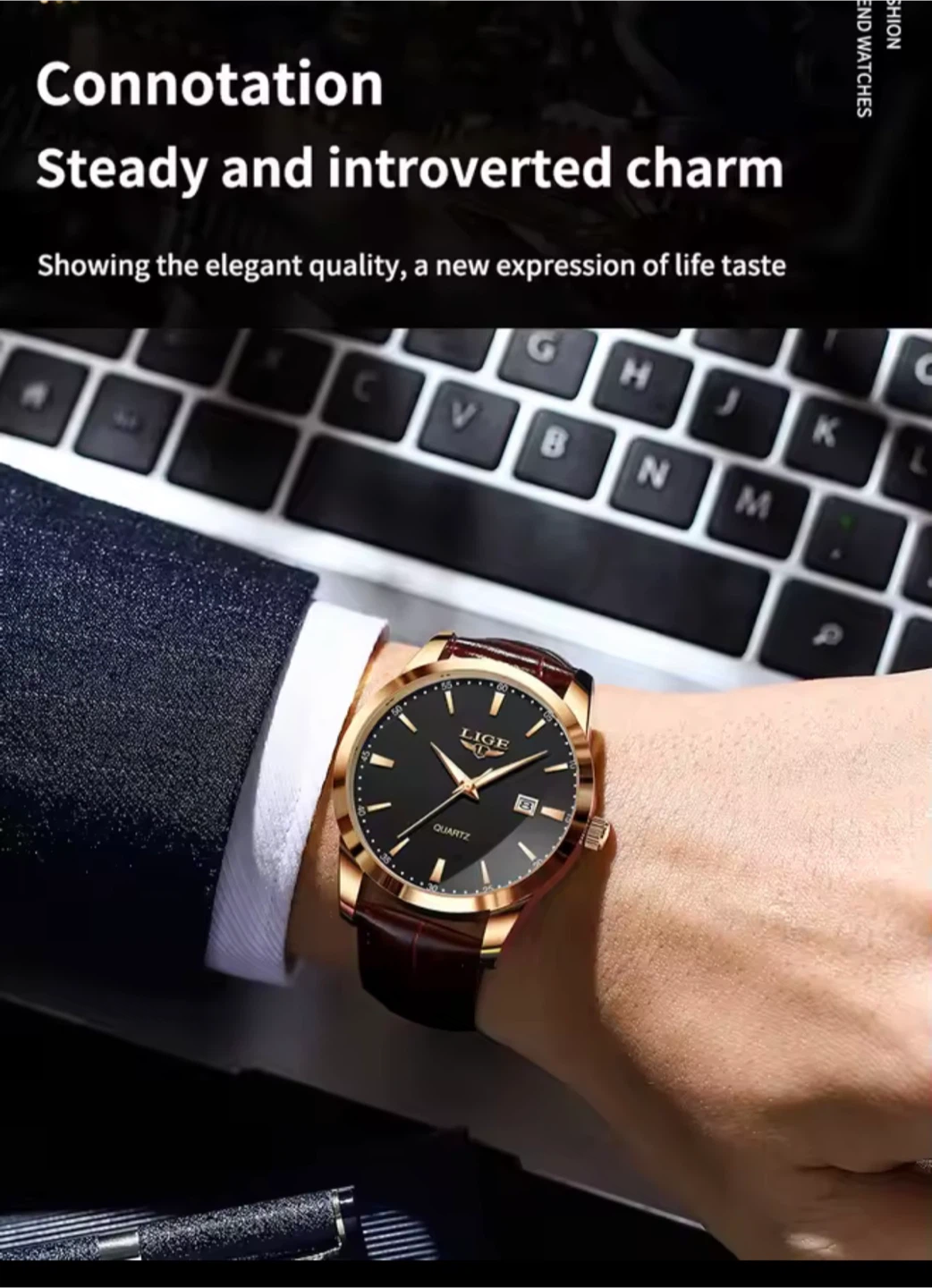 This LIGE watch features a leather strap that's gentle and comfortable, fitting snugly on the wrist. The large digital calendar is easy to read, and the high hardness coated mirror surface is scratch and abrasion resistant. It also has a screw-down crown and luminous hands for easy time reading in the dark