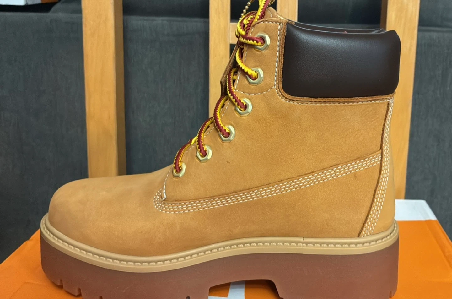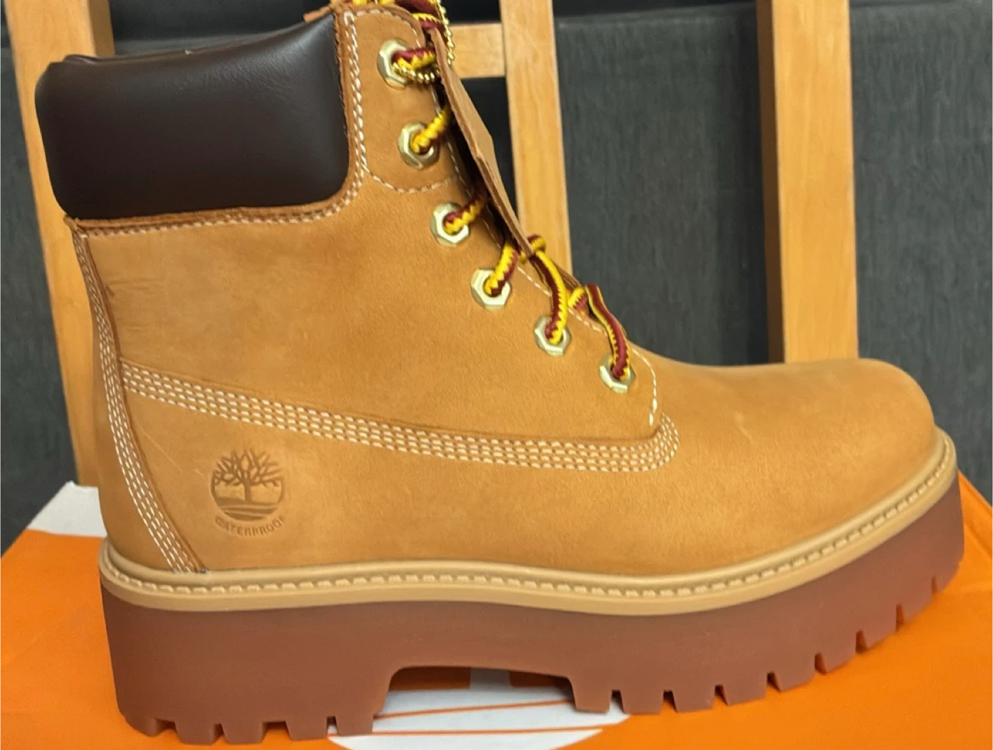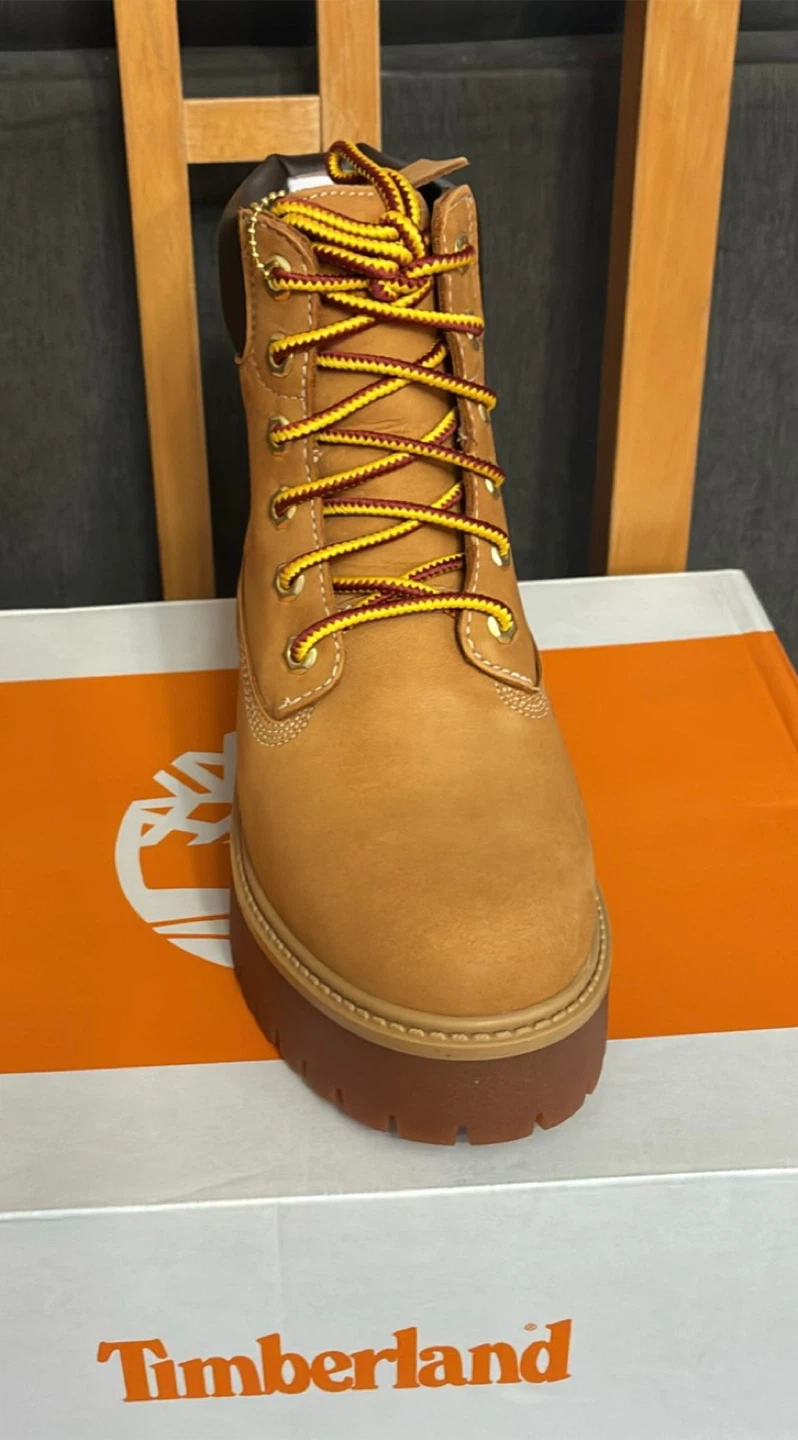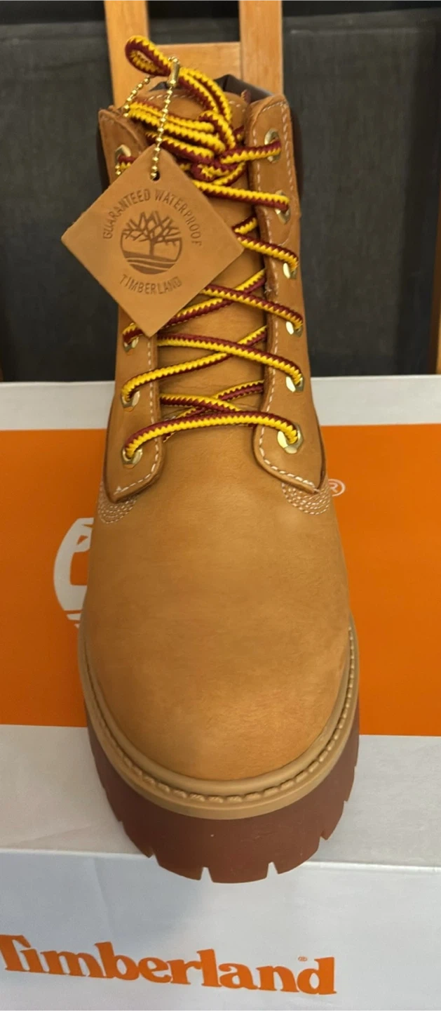 These Timberland Heritage Platform 6-Inch Waterproof Boots are brand new in the box . They are a women's size Men’s 6.5 Women’s 8 in wheat nubuck. These stylish and durable boots are perfect for any weather!