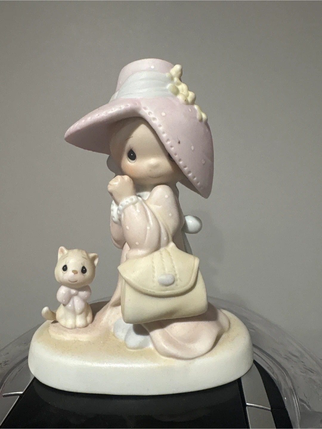 This is a Precious Moments figurine of a girl with a cat. It's in great condition and would make a lovely addition to any collection