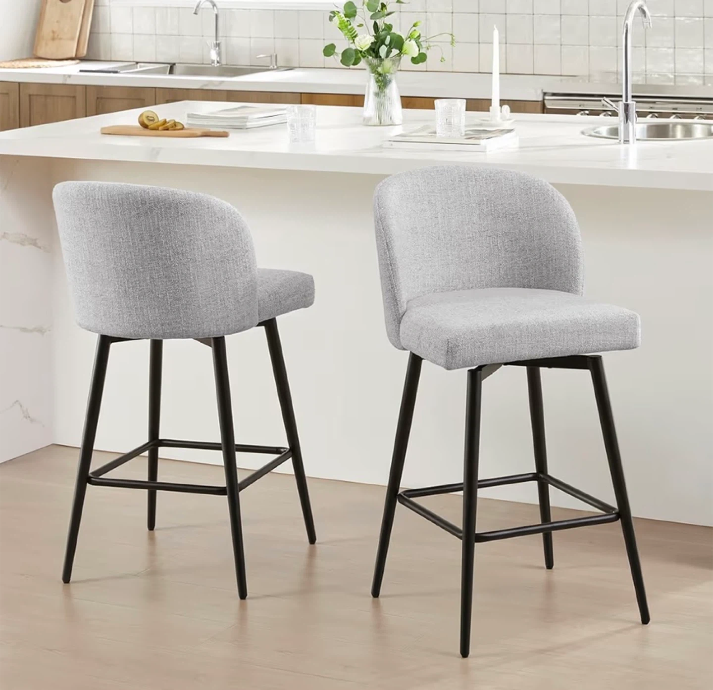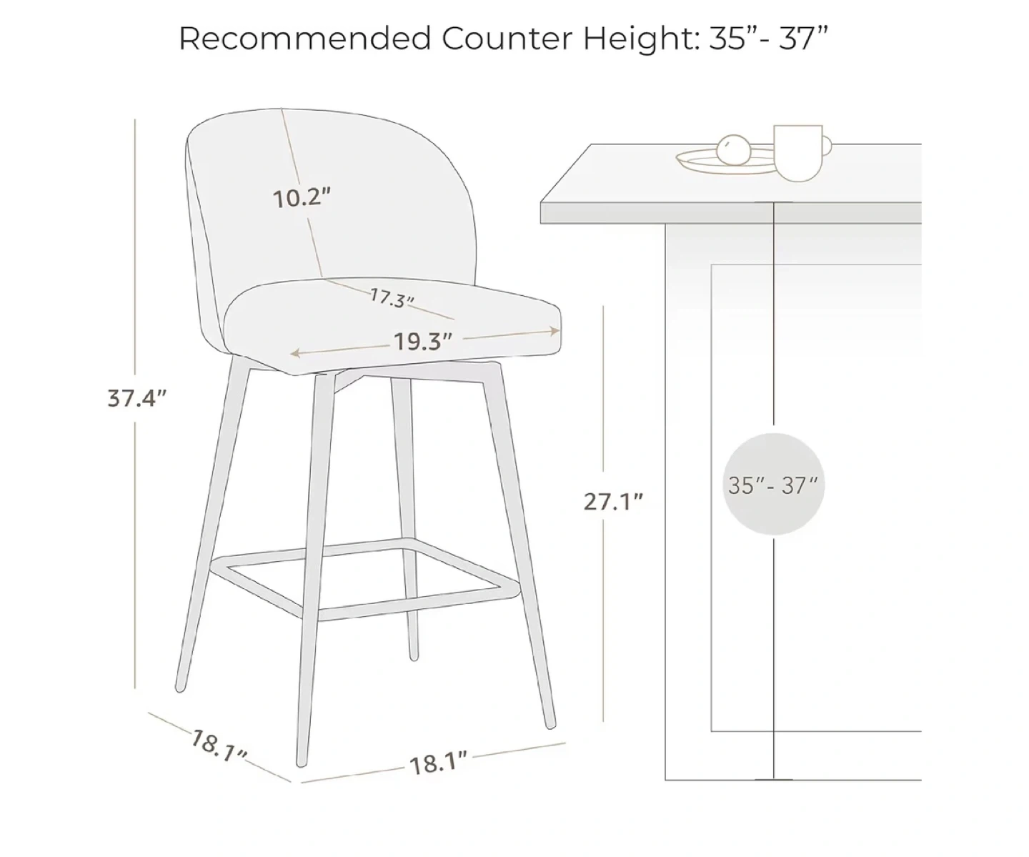 Selling a counter height stool with a comfortable gray fabric seat and sleek black legs. The seat dimensions are approximately 17.3" wide and 19.3" deep, with a back height of 10.2". The overall height of the stool is 37.4", perfect for counters between 35" and 37".