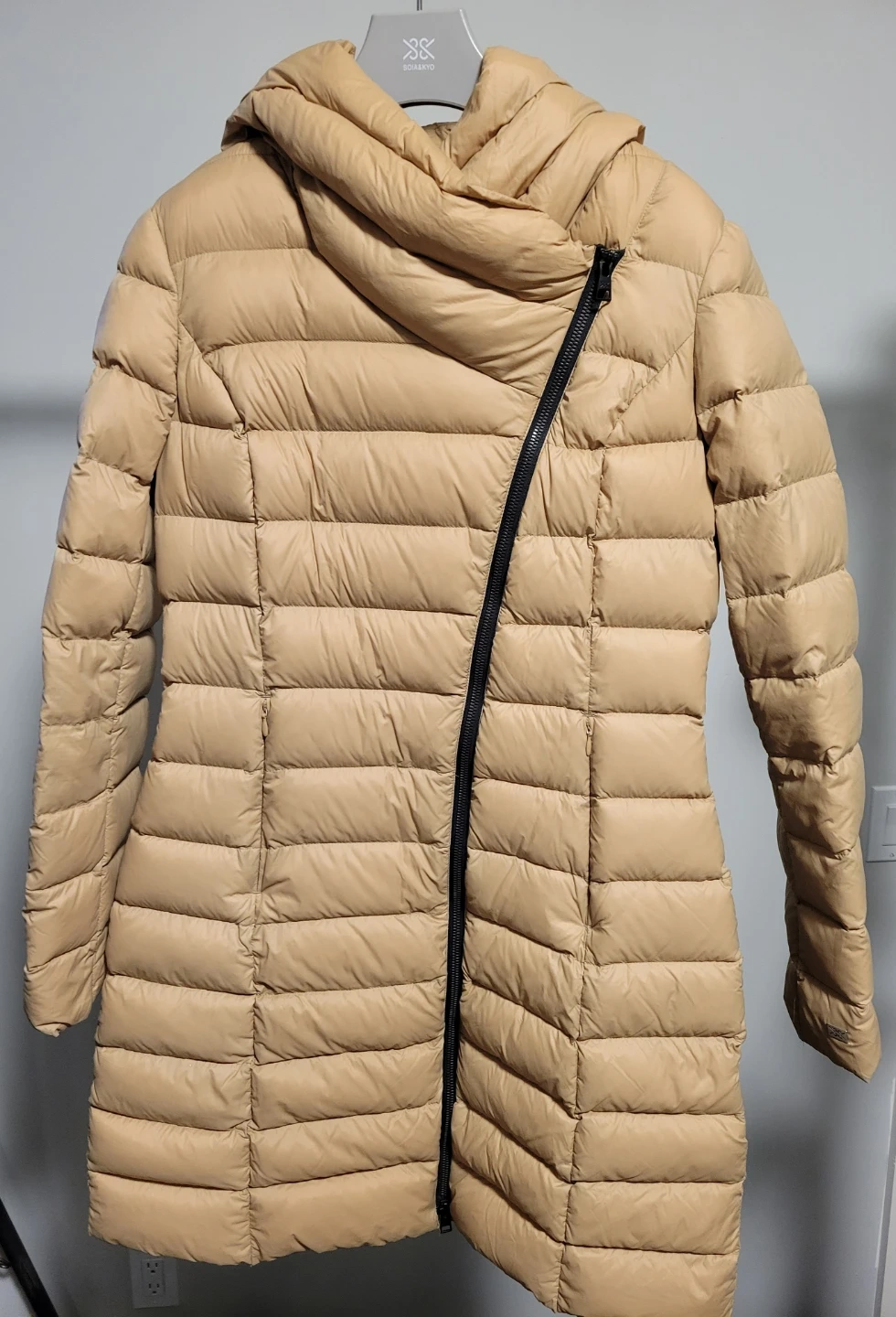 The Karelle-TD by Soia & Kyo is a warm, stylish and sustainable cold-weather closet staple. This slim-fit, above-knee puffer is made with RDS certified lightweight down and 100% recycled water-repellent quilted nylon. The asymmetrical front closure hugs the body, while the oversized hood provides extra shelter from the elements.