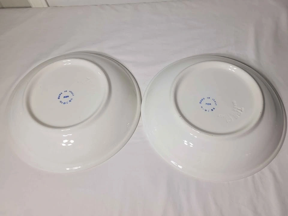 Vintage Tre Ci Himark Italian "Blue Pencil Sketch" Pasta Serving Bowl - Made in Italy It's about 11-3/4" by 2-1/2" deep, and has only one little chip on the rim and lots of crazing. Good used condition.