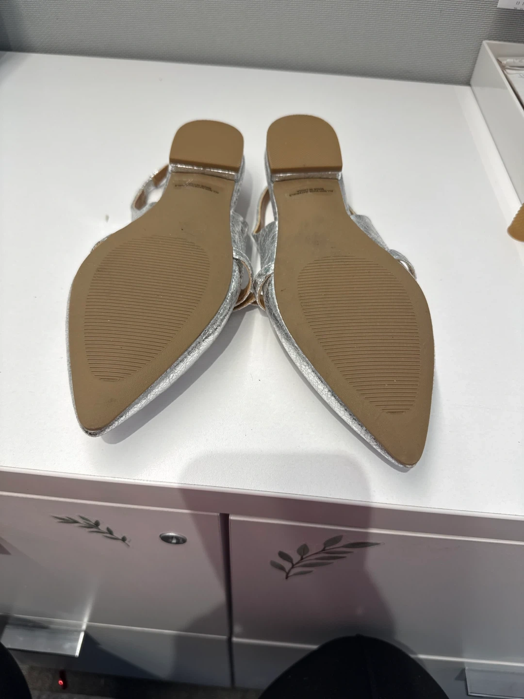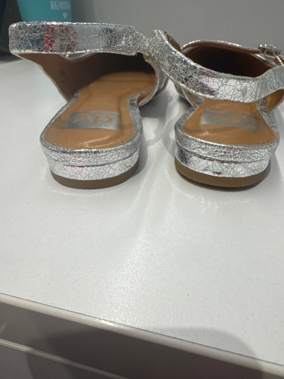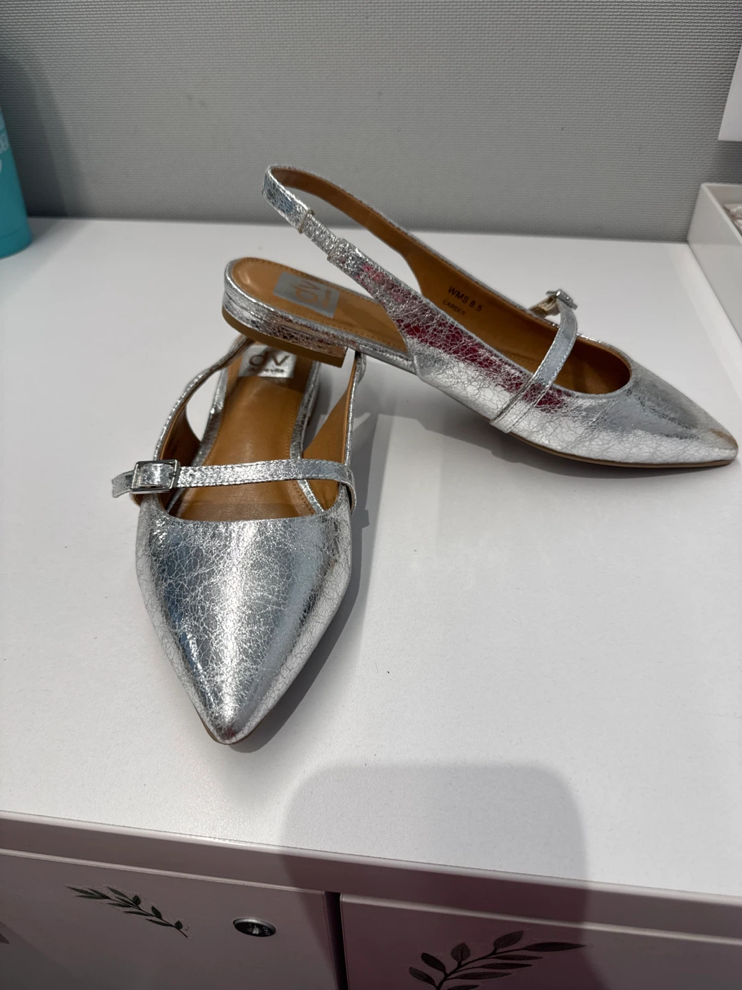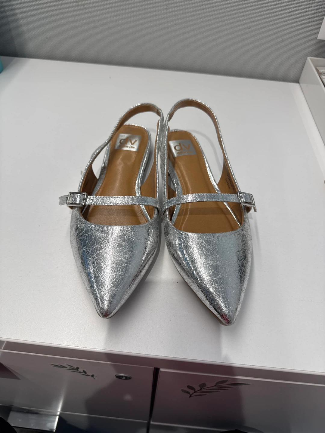 Selling a pair of DV Dolce Vita slingback flats in silver! These are a size 8.5 and have a stylish, sleek look. Perfect for adding a touch of sparkle to your outfit!