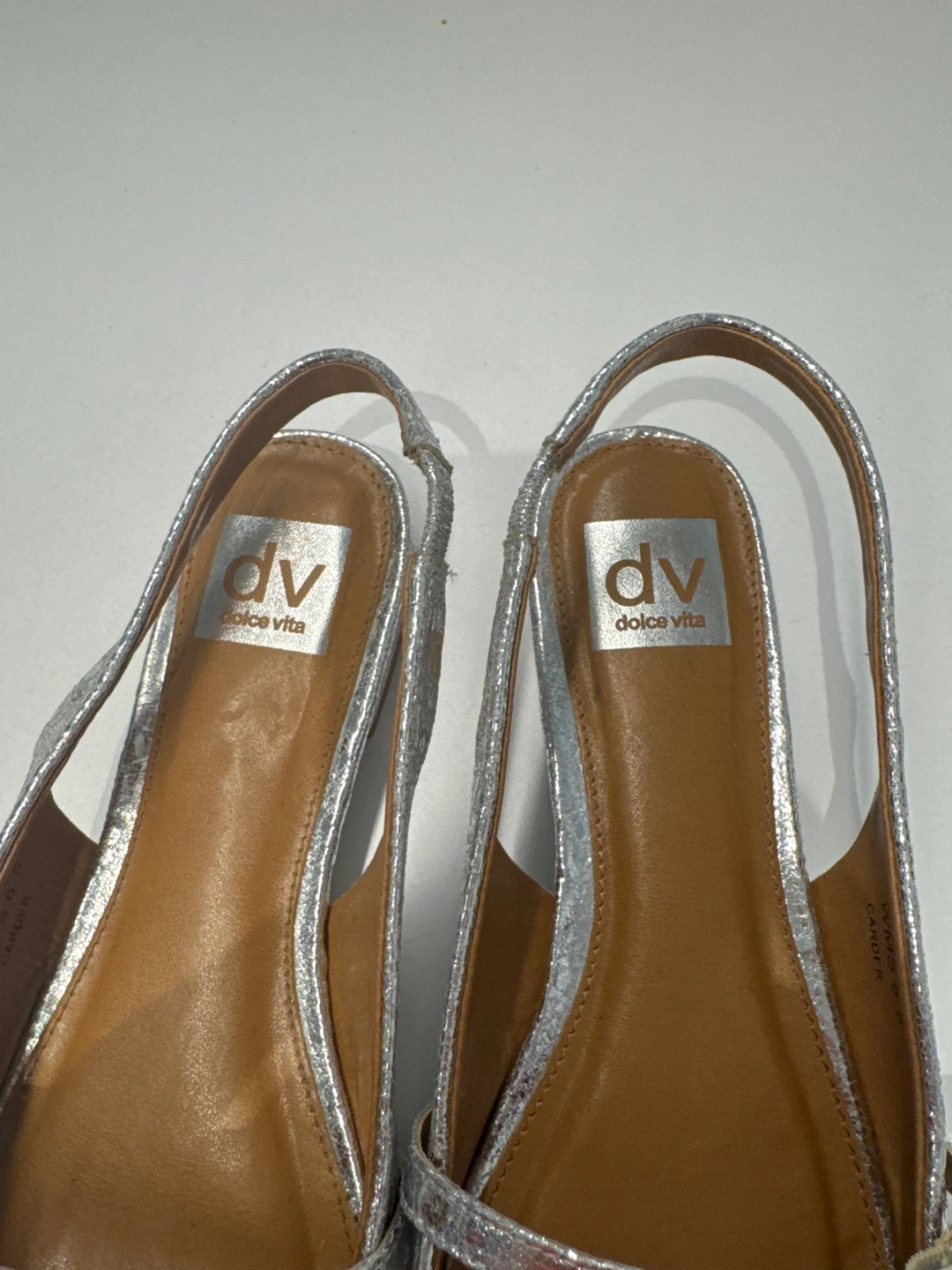 DV Dolce Vita Silver Slingback Flats, Size 8.5