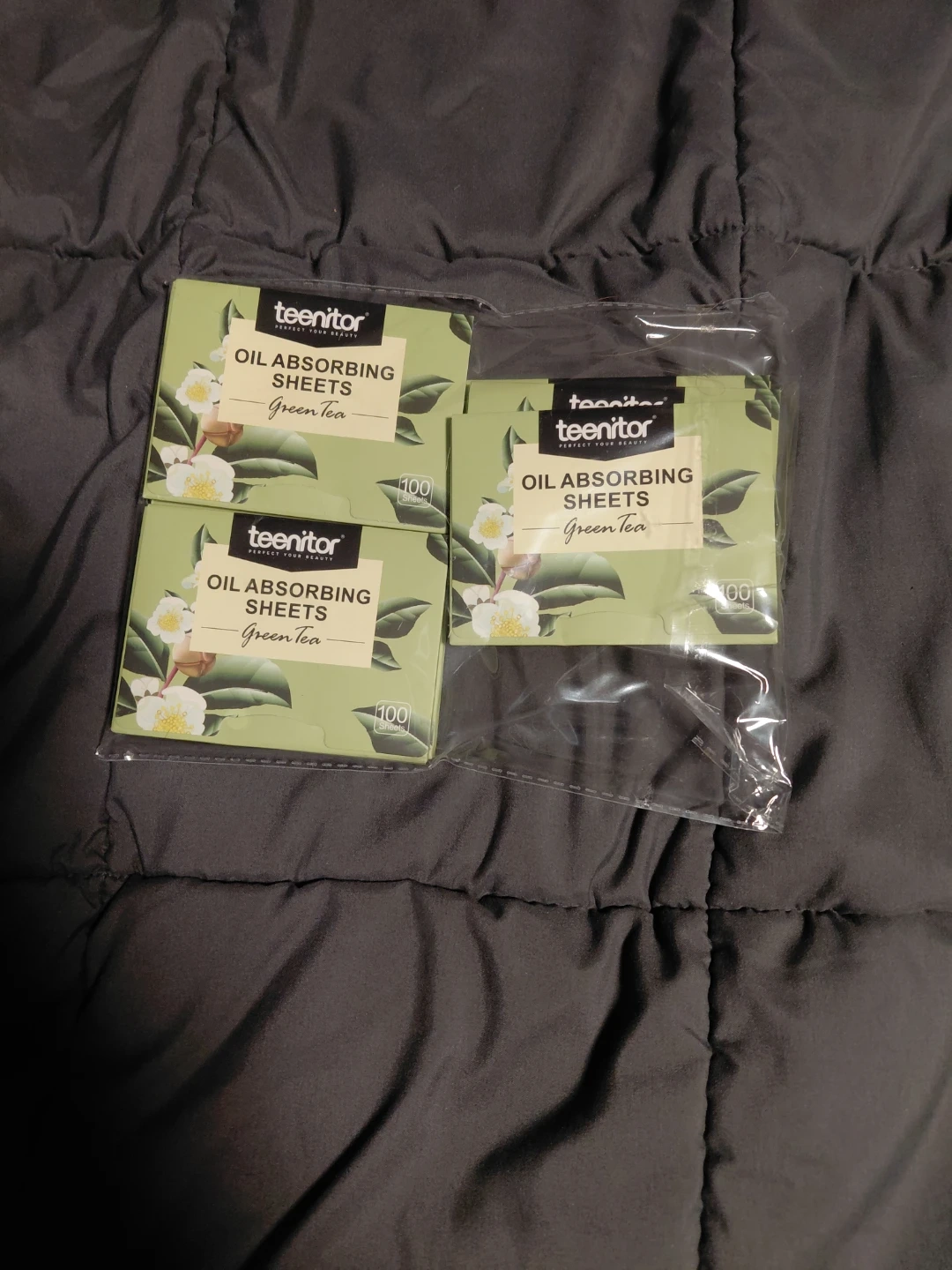 I'm selling Teenitor Oil Absorbing Sheets in Green Tea scent. Each pack contains 100 sheets to keep your skin feeling fresh and clean. Perfect for on-the-go use!