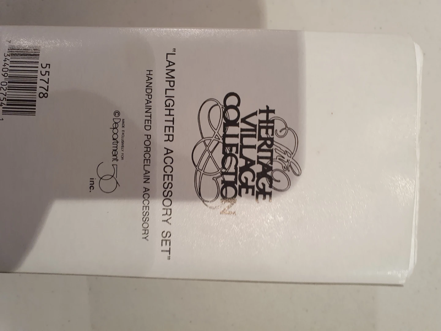 I'm selling a Department 56 "Lamplighter Accessory Set" from the Heritage Village Collection. It's a handpainted porcelain accessory, perfect for adding a touch of charm to your village display