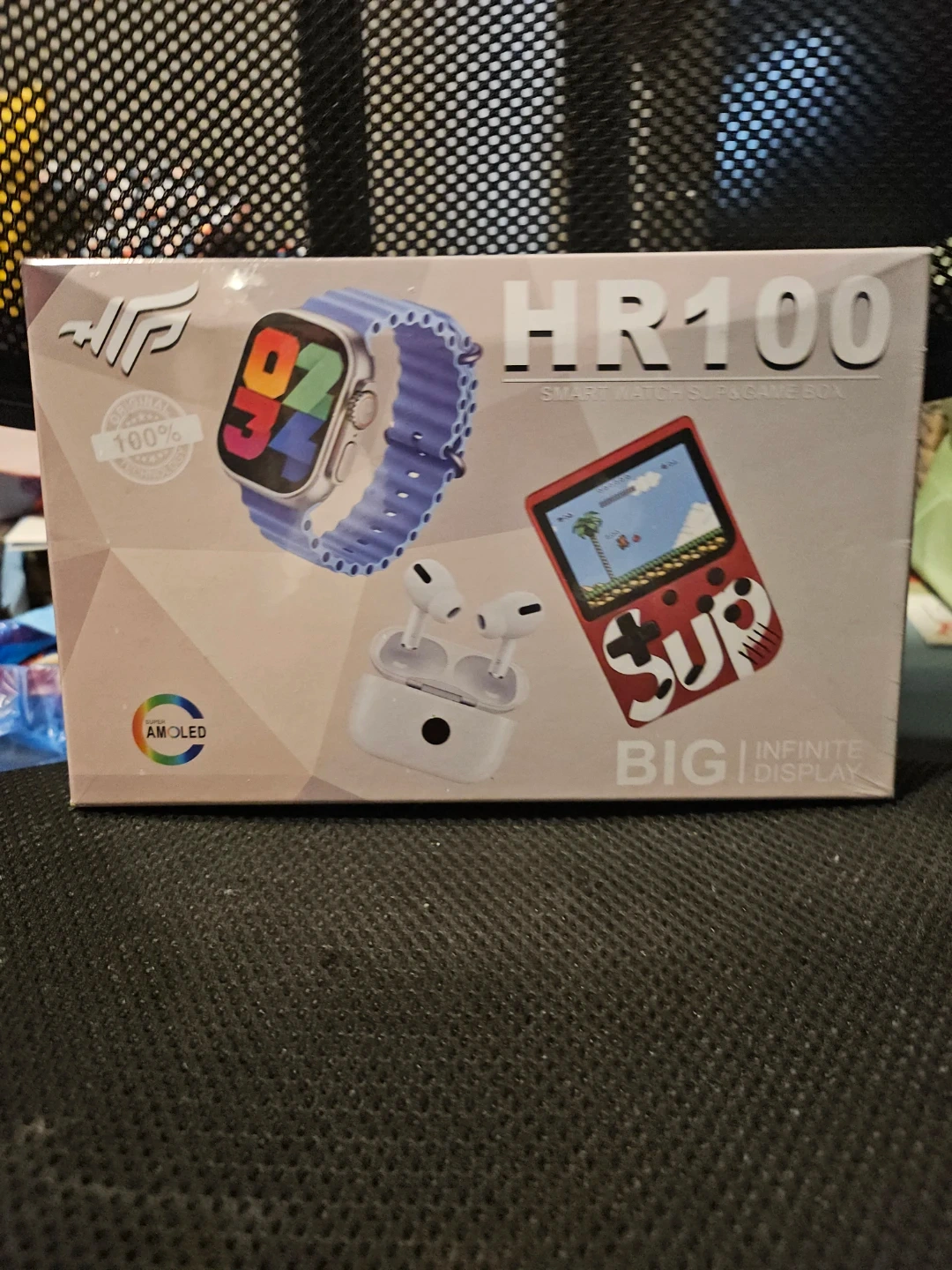 Selling a HR100 Smart Watch and Game Box. Includes a smart watch, band, charging cable, and user manual. Battery life, charge cycles, and display life vary by use and settings. Smart Watch may need to be serviced or be replaced by authorized service provider