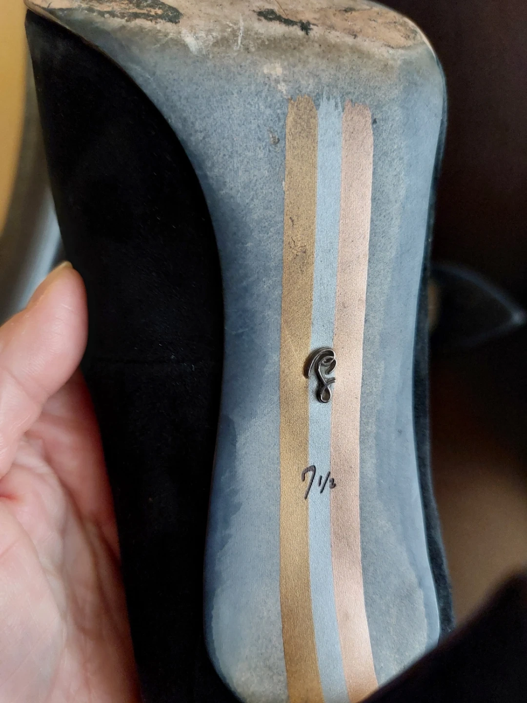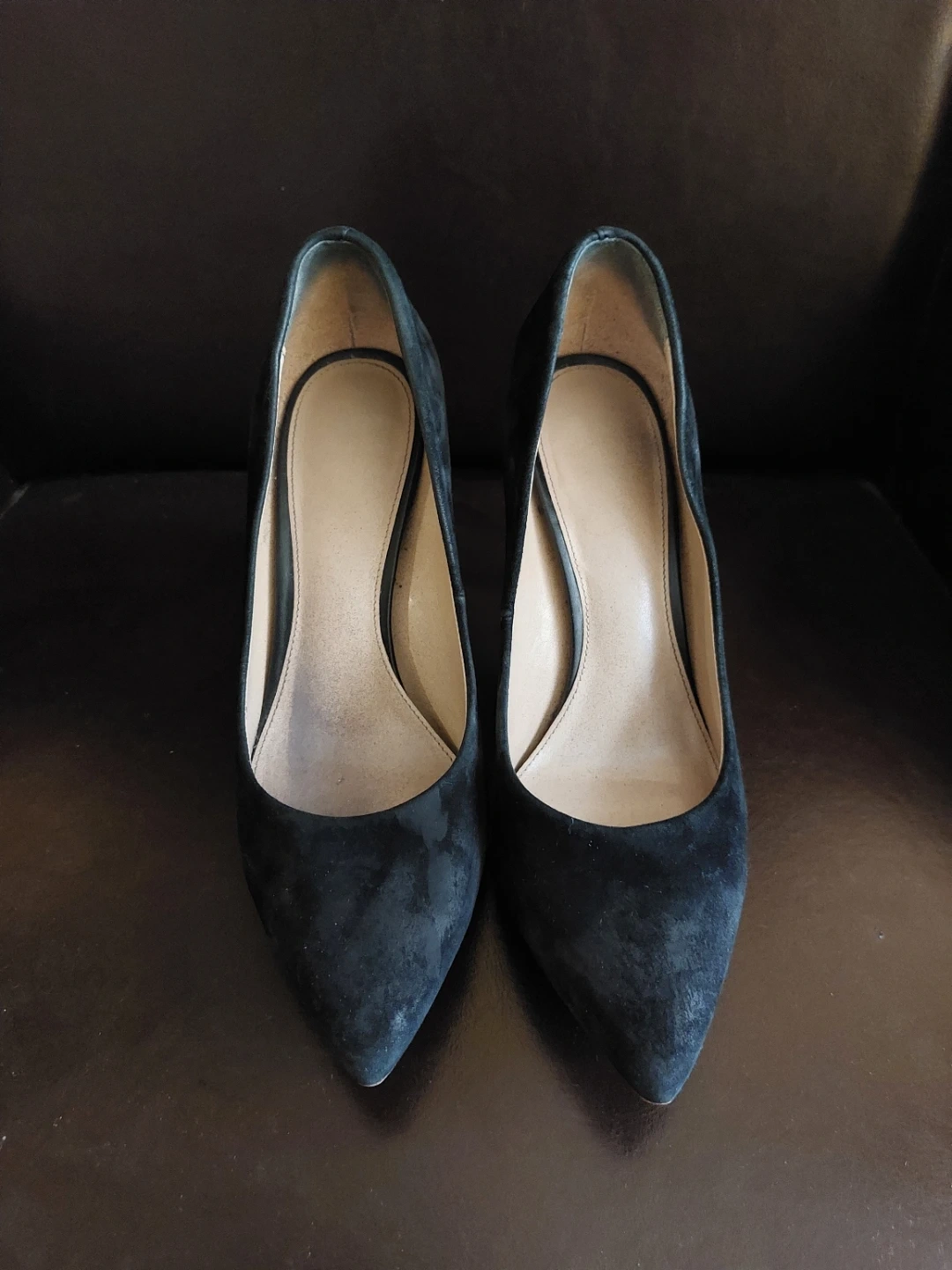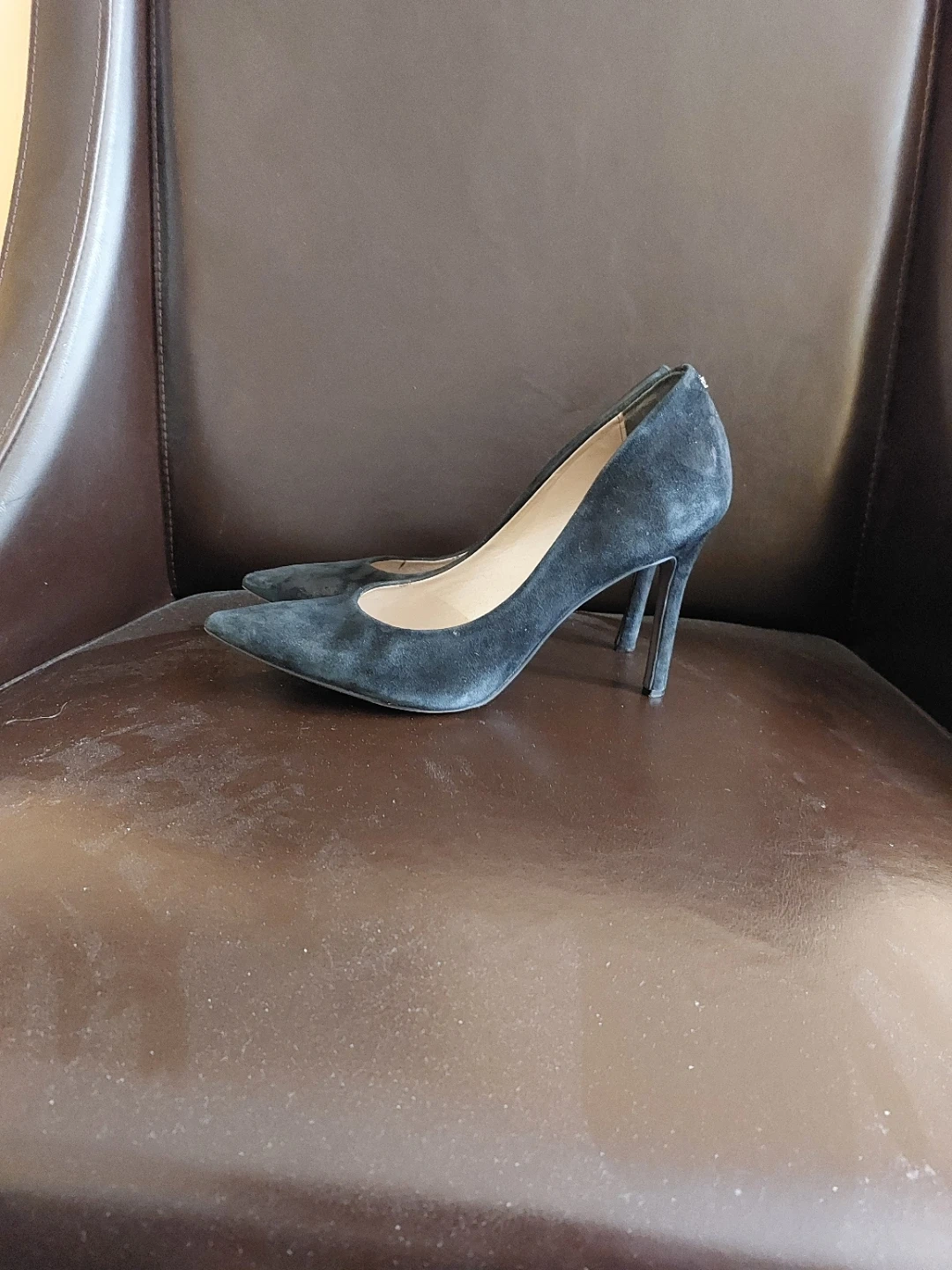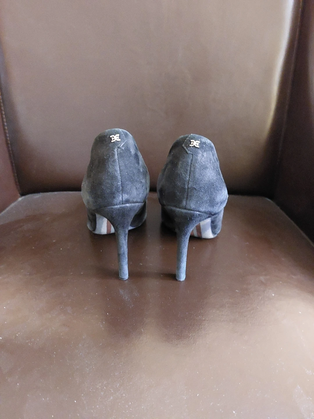 Selling a pair of Sam Edelman black suede heels in size 7.5. They are in good condition and ready for a new owner! 10 cm heels and they are steady and comfortable. Metal logo on the back of the shoes proves it is Sam Edelman.