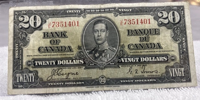 This is a Bank of Canada $20 bill from 1937 featuring King George VI. If you're reading this, it's still available!!