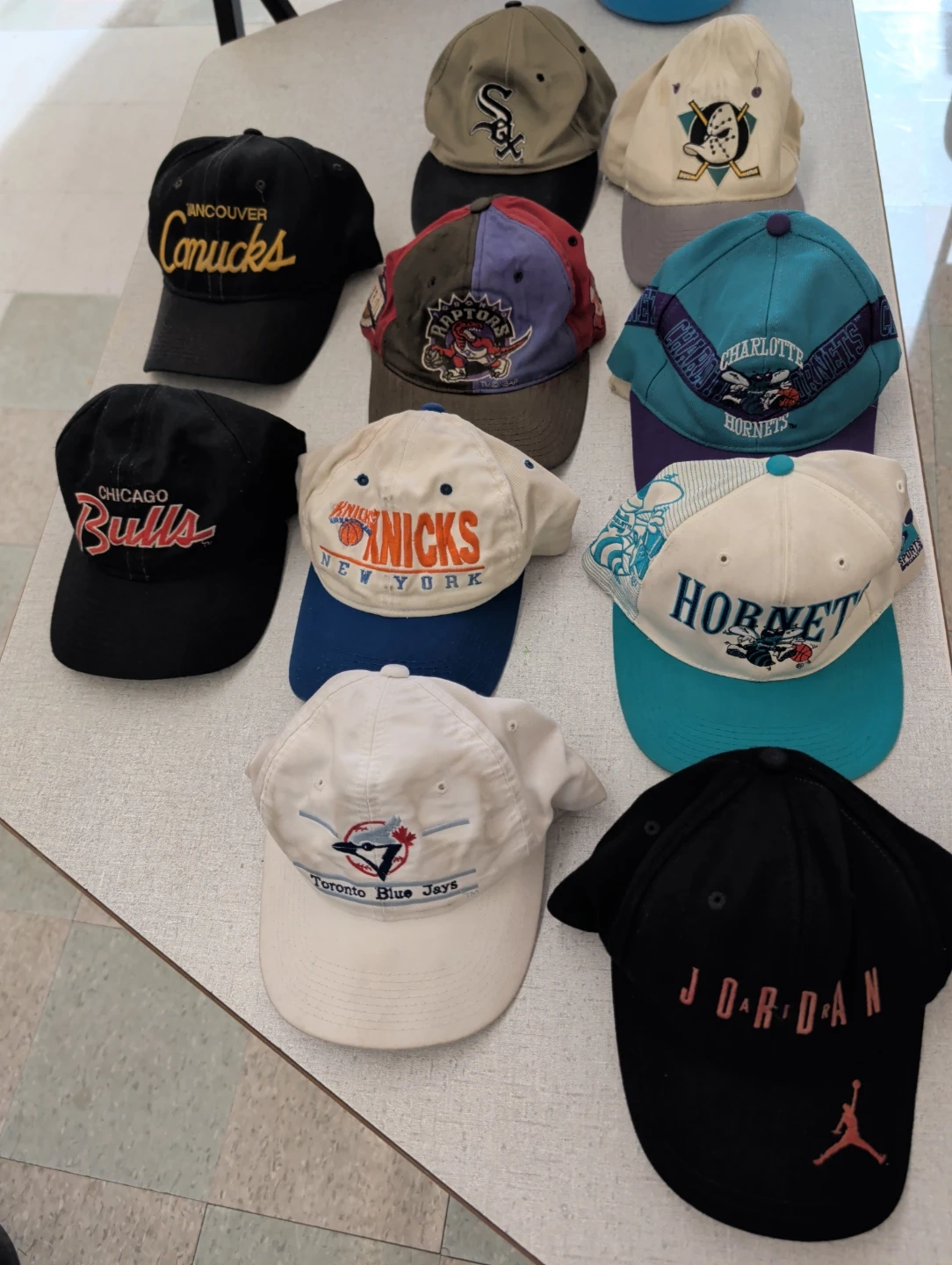 Here's a bunch of old school snap back caps! It's in good condition and ready for a new fan. Perfect for showing your team spirit!