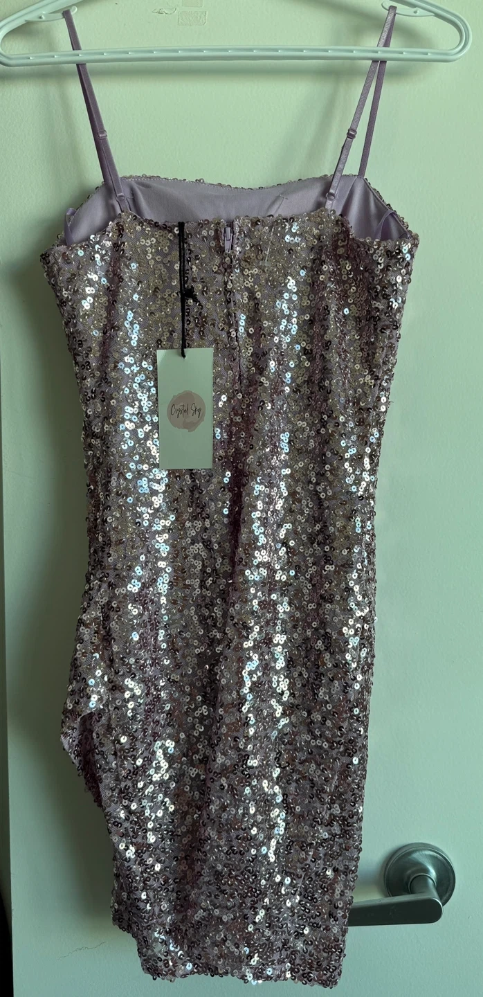 It's a gorgeous lilac colour and perfect for a New Year’s Eve. The dress is brand new with tag on.
