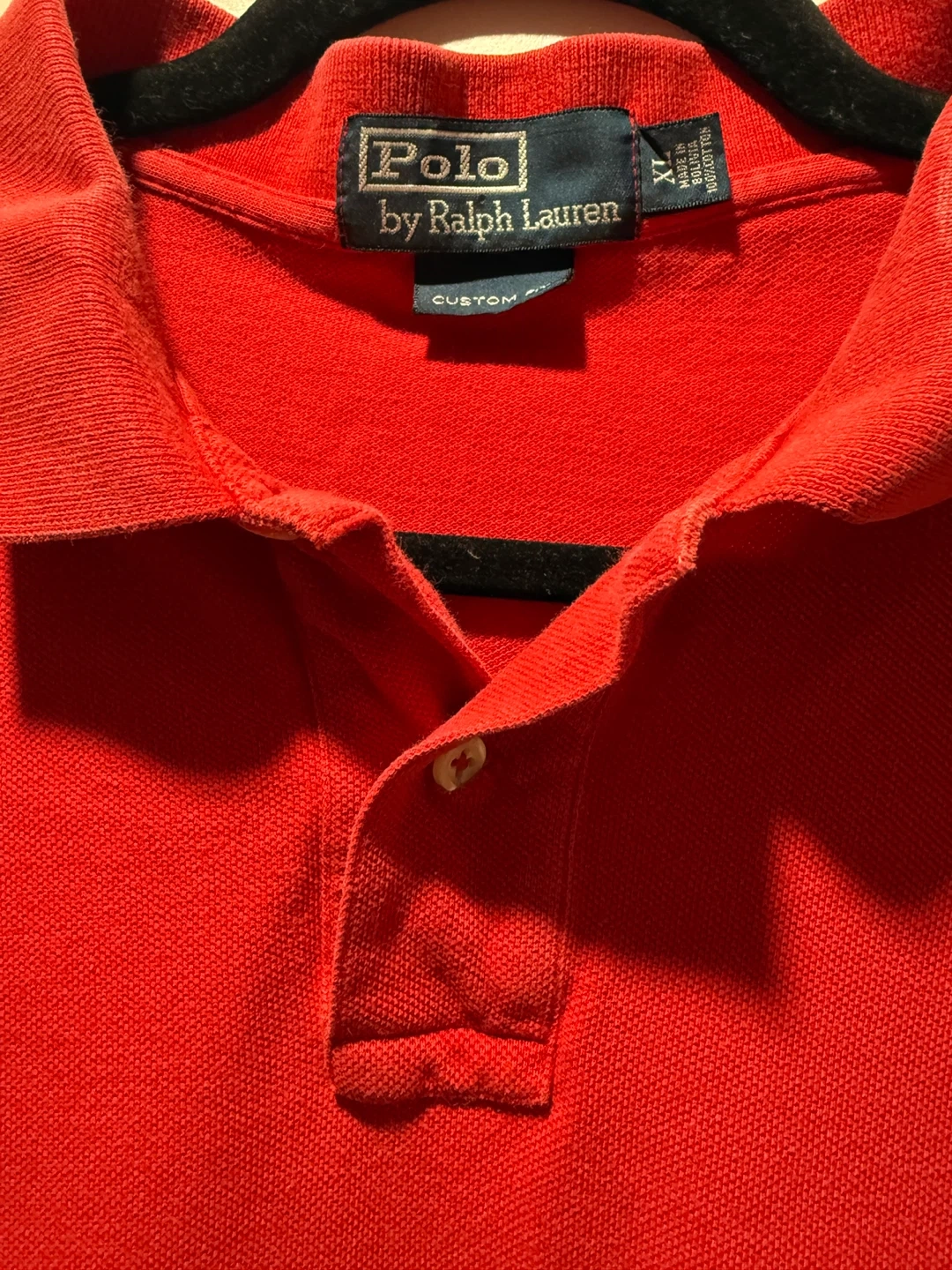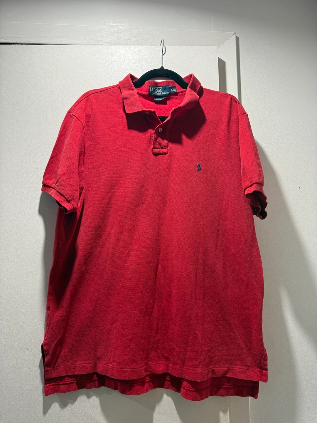Selling a Polo by Ralph Lauren polo shirt in red. It's a size XL and in good condition. The material is cotton. Feel free to reach out if you have any questions!