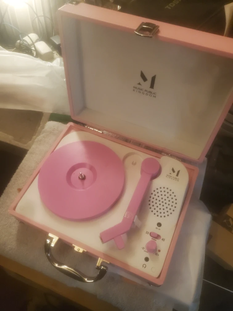Selling a Music Public Kingdom portable mini suitcase turntable! It's in great shape and ready for a new home. This turntable is perfect for enjoying your favourite vinyl records on the go. It has a charming suitcase design and is easy to carry around