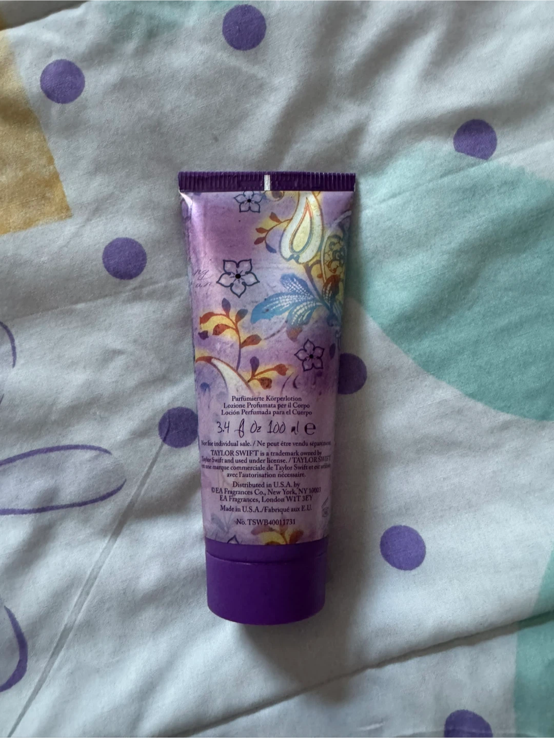 Selling a new Taylor Swift Wonderstruck scented body lotion! It's a 100ml (3.4 fl oz) tube. Perfect for keeping your skin moisturized with a lovely scent