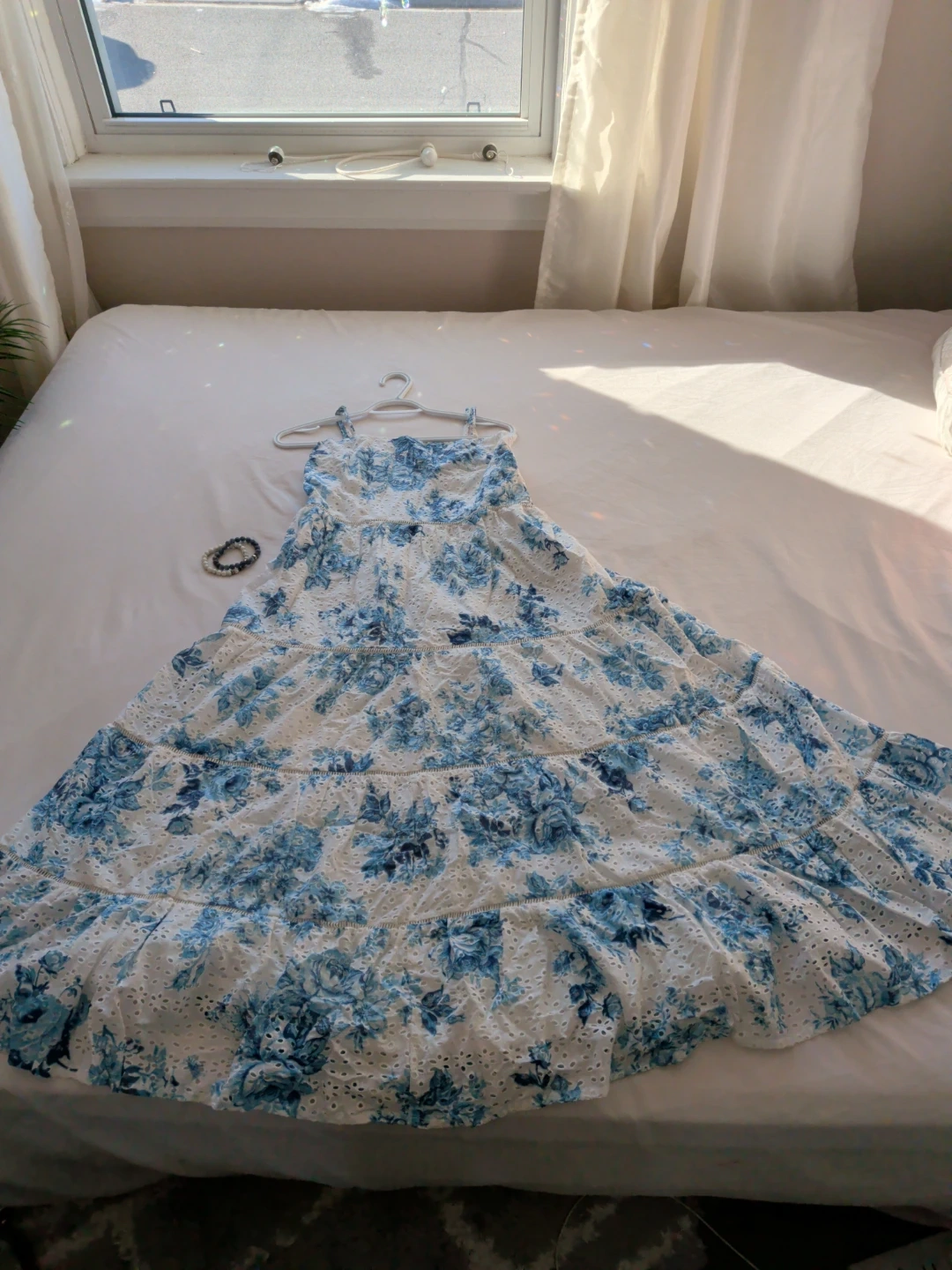 Selling this beautiful floral dress in a lovely blue and white pattern. New never used. Please send an offer. The price shown is to only post this dress not an actual price