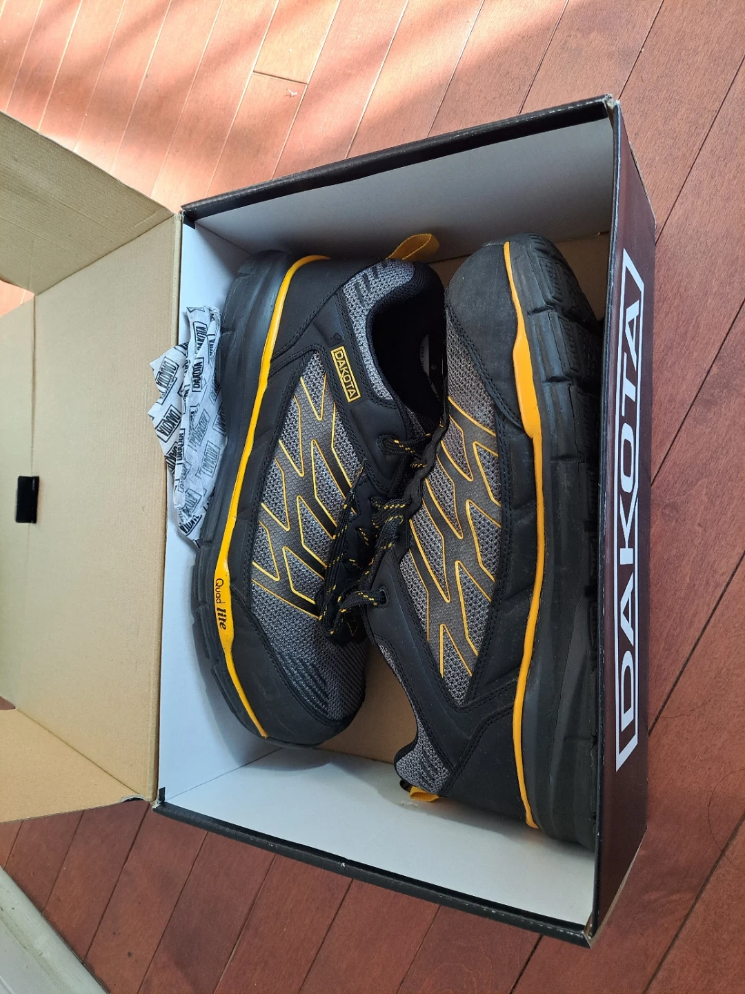 Selling a pair of Dakota Quad Lite safety shoes in size 9. They're in great shape and come with the original box! The style is black/yellow. Originally bought for $129.99