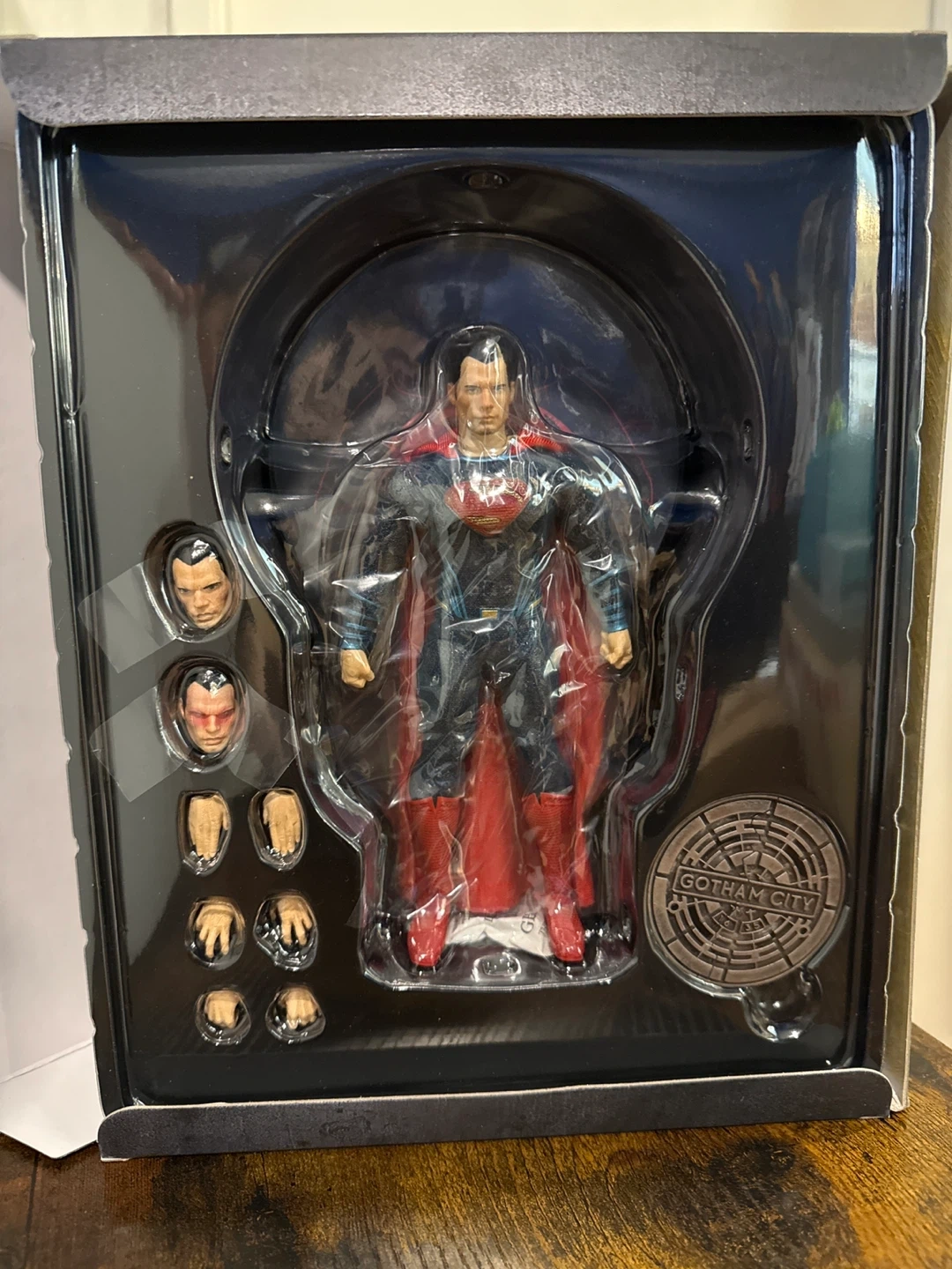 Selling a ONE:12 Collective Superman action figure. It comes in the box and includes all components shown in the pictures, like the alternate heads and hands!
