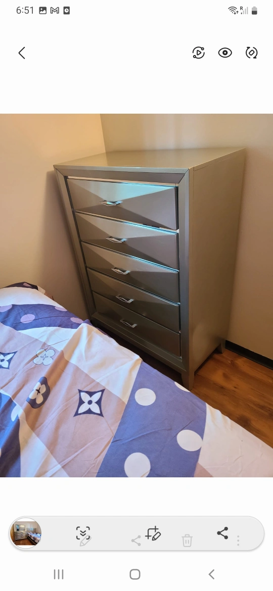big dresser with 8 drawers, dresser top h.as some scratches while moving stuff. chest of drawer with 5 draws. box spring is free.