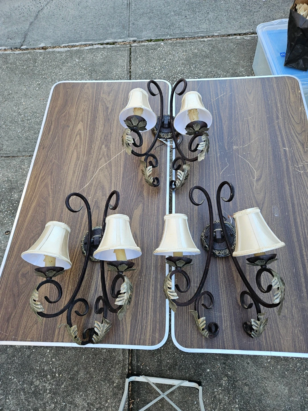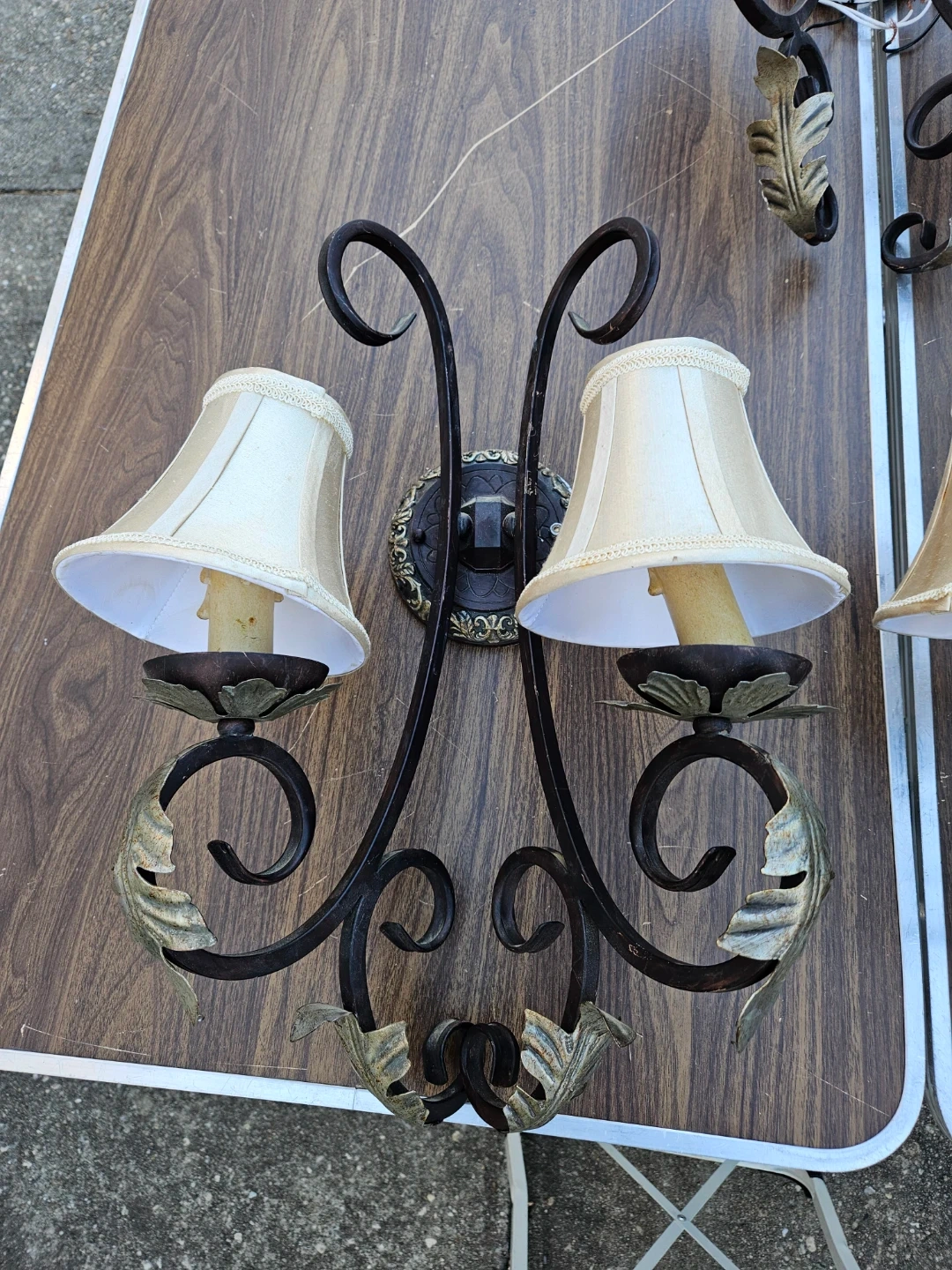 3 large iron sconces. They each come with shades. 20 inches height, 15 inches wide. Paid $600. 3 for $100 great price. Cash. Must pickup sheepshead bay brooklyn ASAP. .