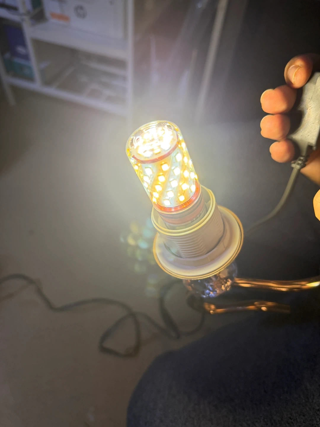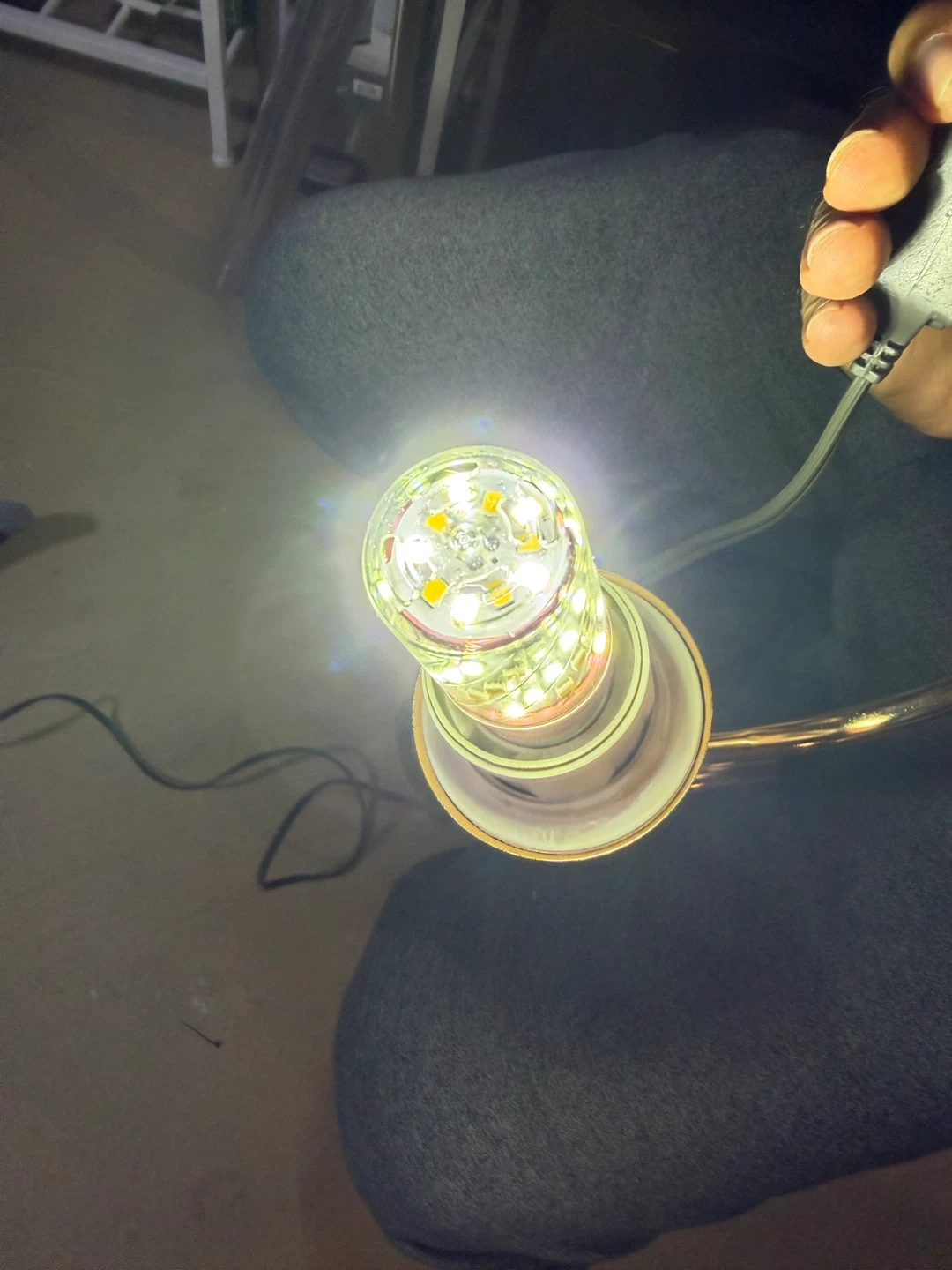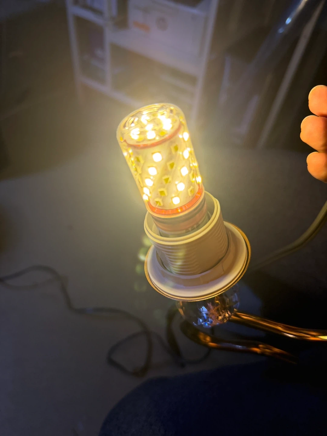 The sconce features a beautiful gold-tone finish and includes LED bulbs. It's a stylish way to add some light to any room!