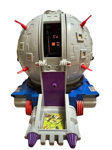 Step into the nostalgia of the 90s with this classic Teenage Mutant Ninja Turtles Technodrome action figure set. Manufactured in 1990 by Playmates Toys, this iconic piece is a must-have for any TMNT enthusiast or collector of vintage action figures. The set showcases the daring adventures of the beloved turtle heroes in their quest to save New York City.