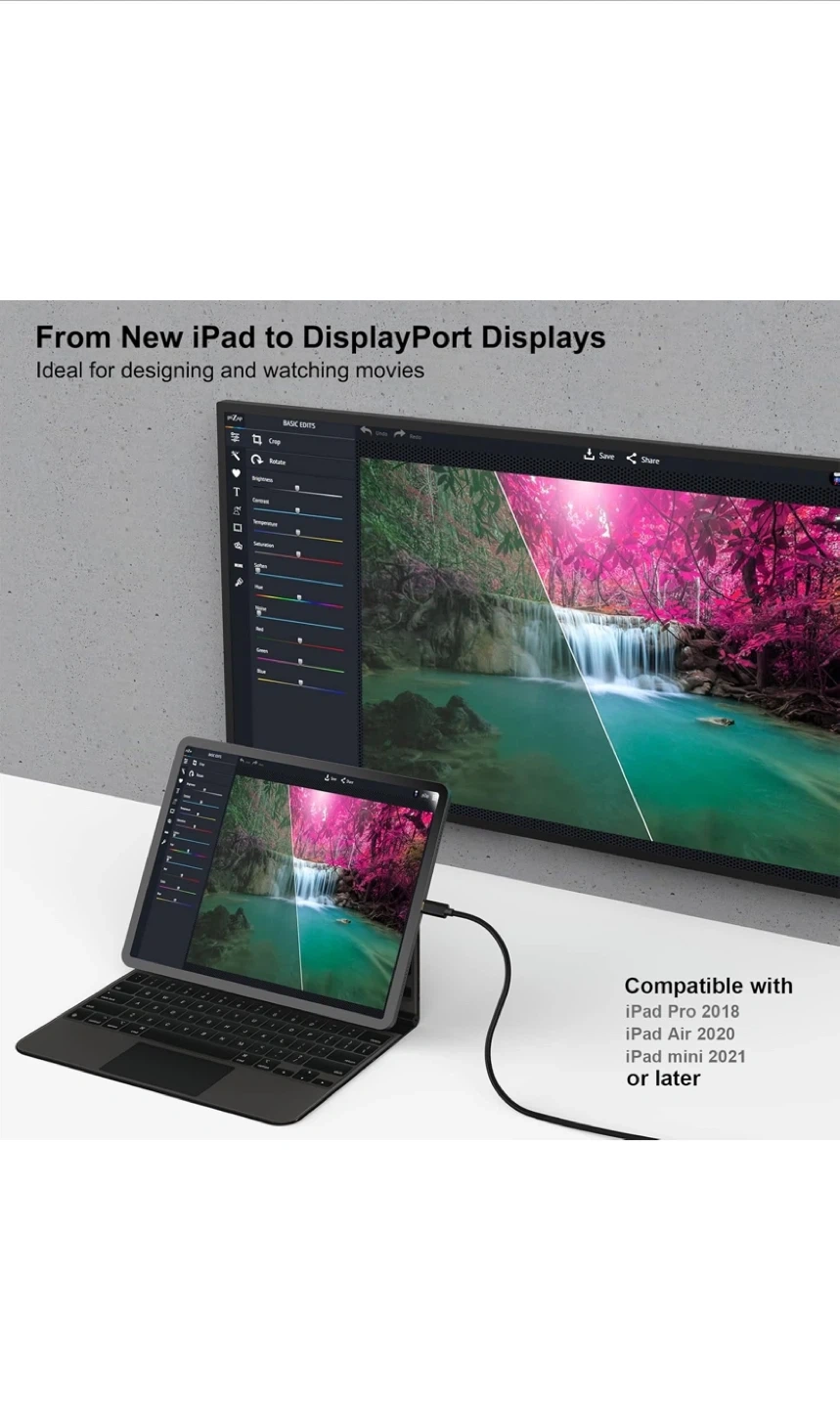 Selling a brand new BENFEI USB-C to DisplayPort cable, still in its original packaging! This cable is perfect for connecting your new iPad to DisplayPort displays, ideal for designing and watching movies.