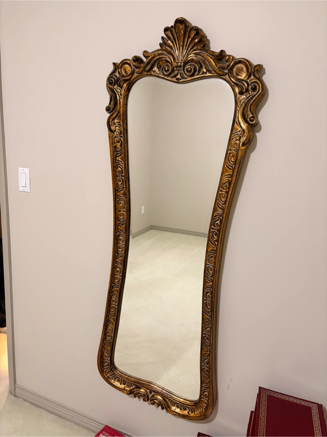 Selling a beautiful ornate mirror with a gold-coloured frame. It's in great shape and would add a touch of elegance to any room!