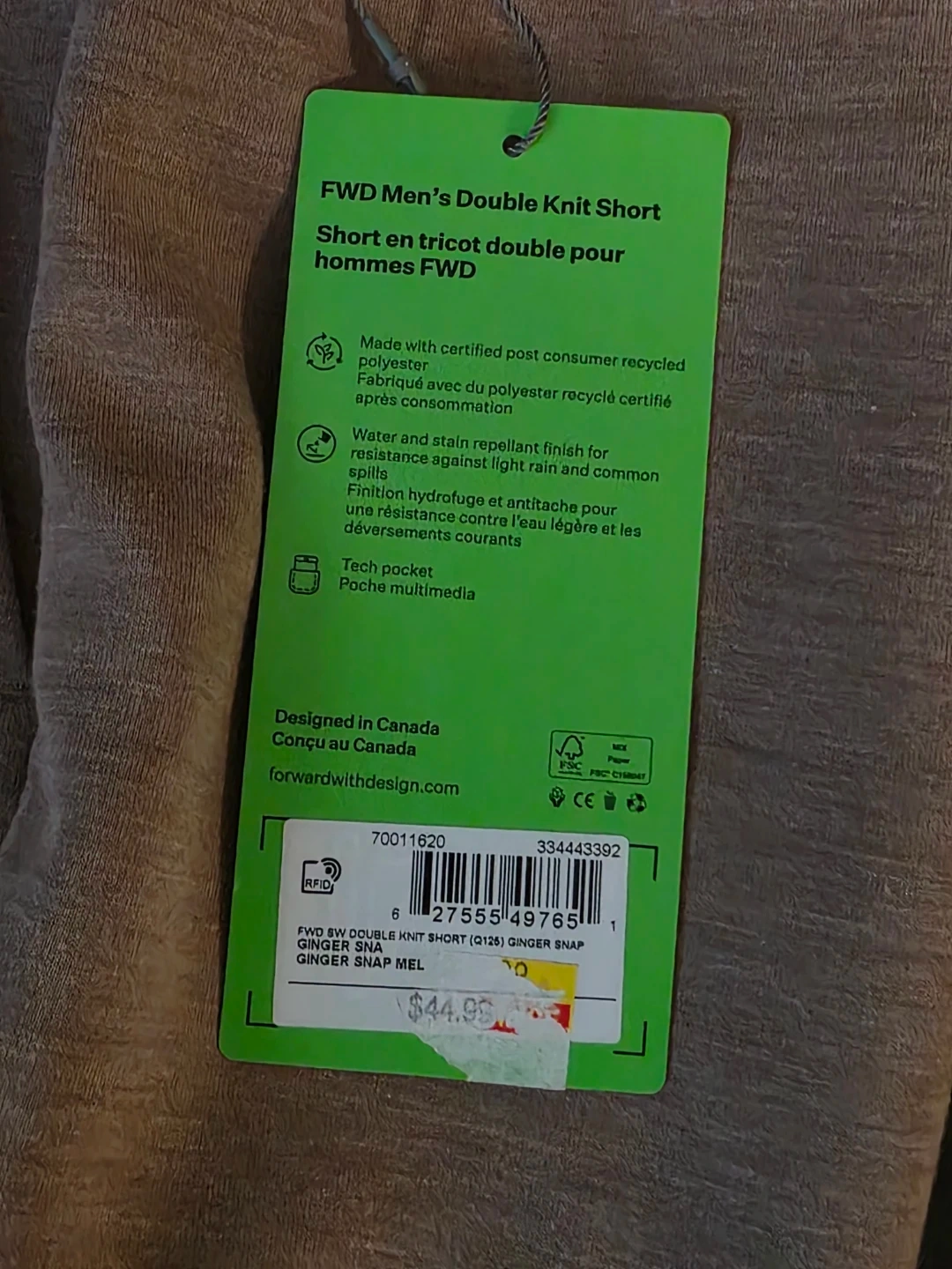 These FWD men's double knit shorts are brand new with tags! They're a size small and feature an 8" inseam. The colour is Ginger Snap. They are made with certified post-consumer recycled polyester and have a water and stain repellent finish. Originally bought for $44.99!