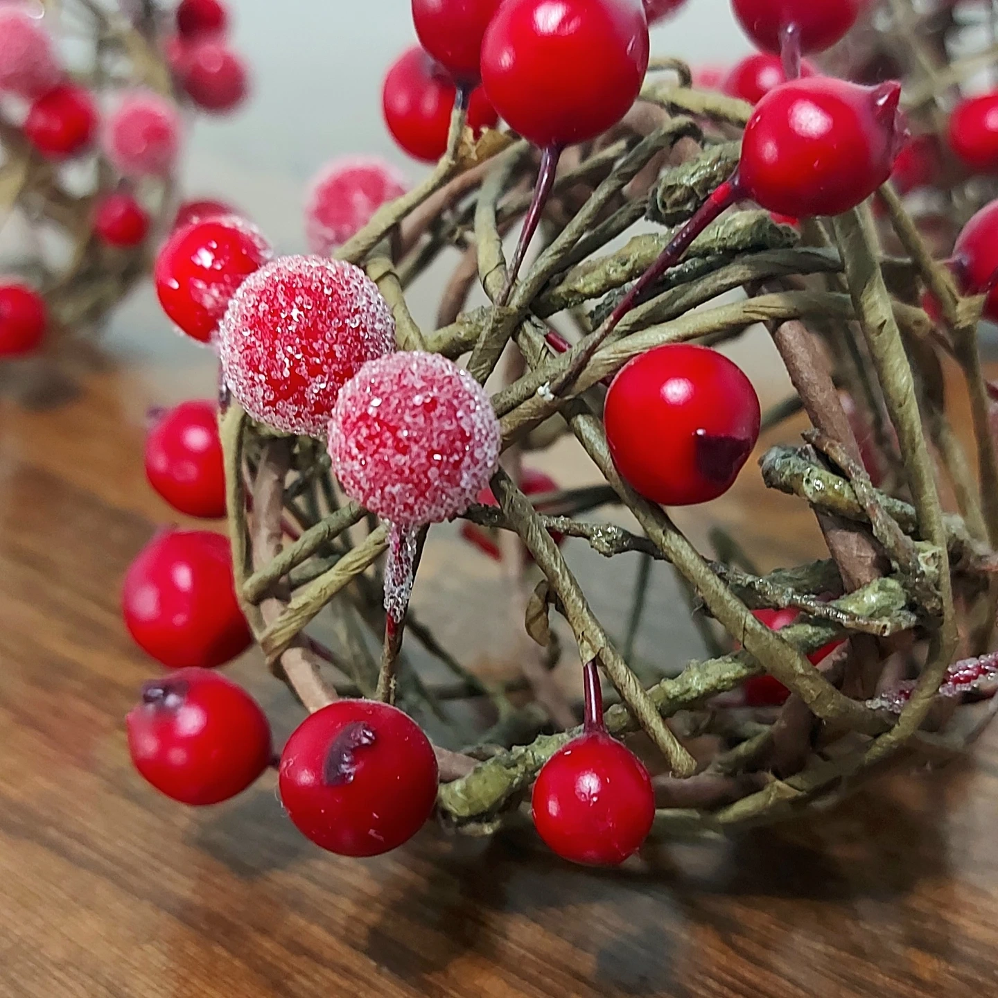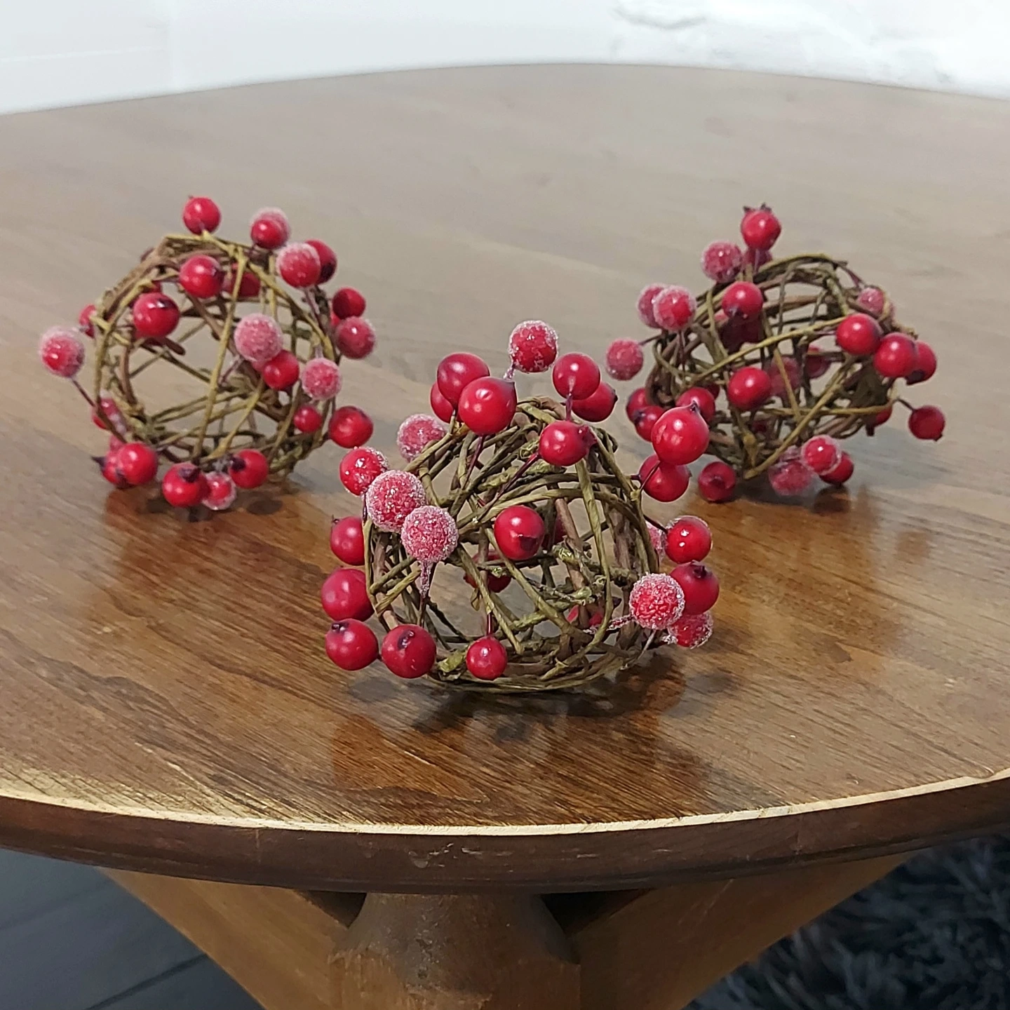 Winter willow balls with faux frosted cranberries, set of 3. In like-new pre-owned condition and no longer needed. Originally purchased from Canadian Tire.