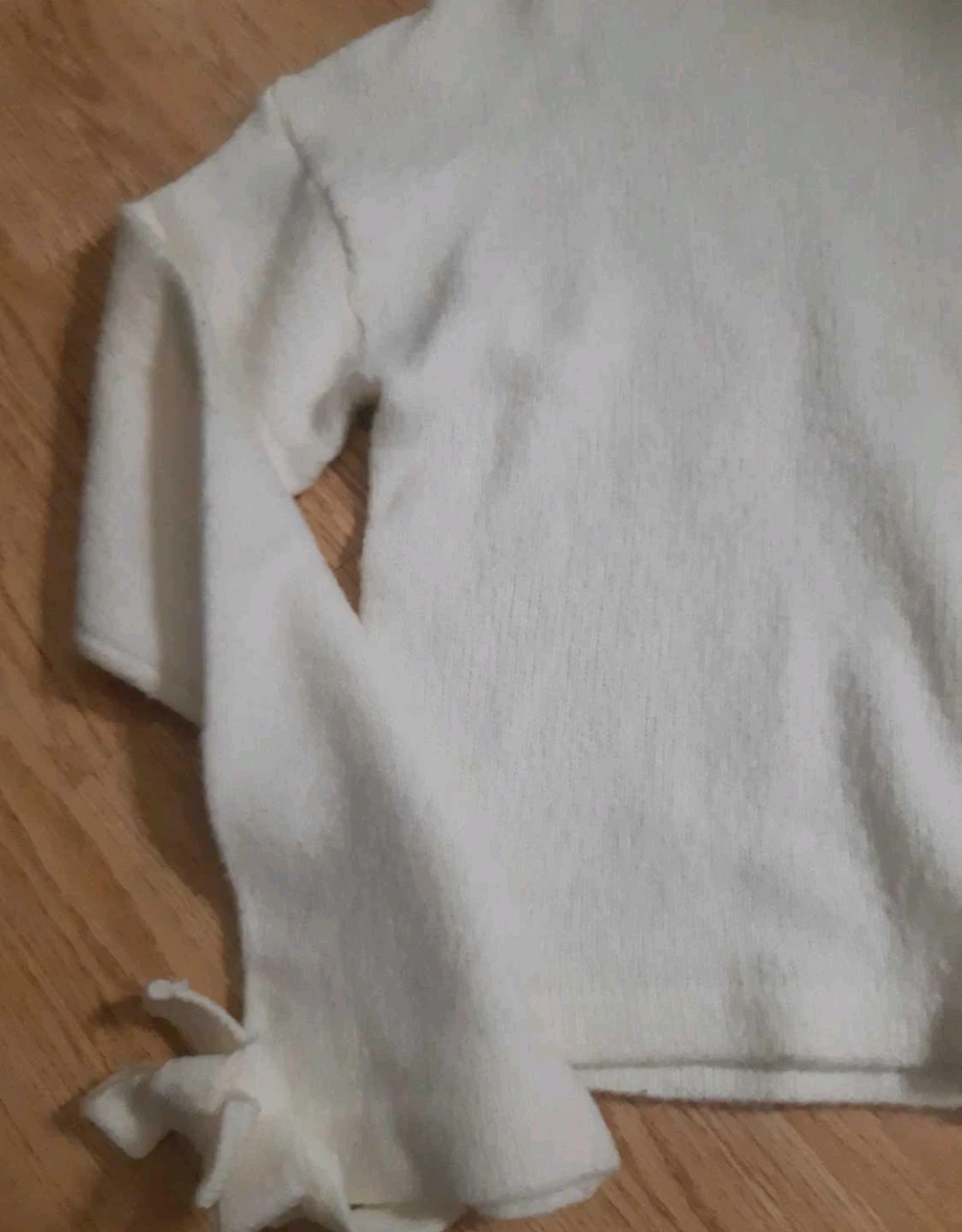 Cream Knit Sweater with Tie Sleeves