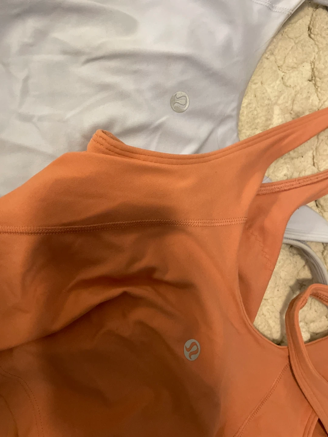 Selling a bundle of Lululemon workout tank tops! One is a light purple and the other is a coral colour. Both are in great condition and ready for your next workout