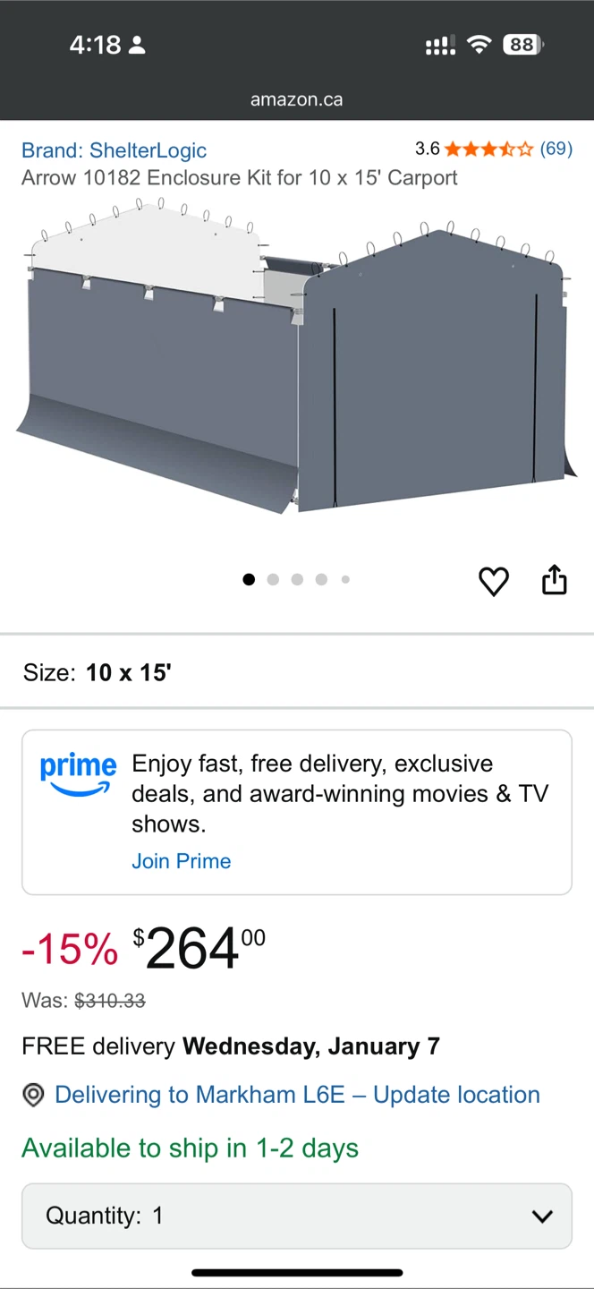 Selling this Arrow Carport Enclosure Kit because I don’t need it anymore. If you already have an Arrow Carport, this is the ultimate upgrade. It’s a game-changer for protecting your vehicle, boat, or seasonal gear from the wind, snow, and rain.
