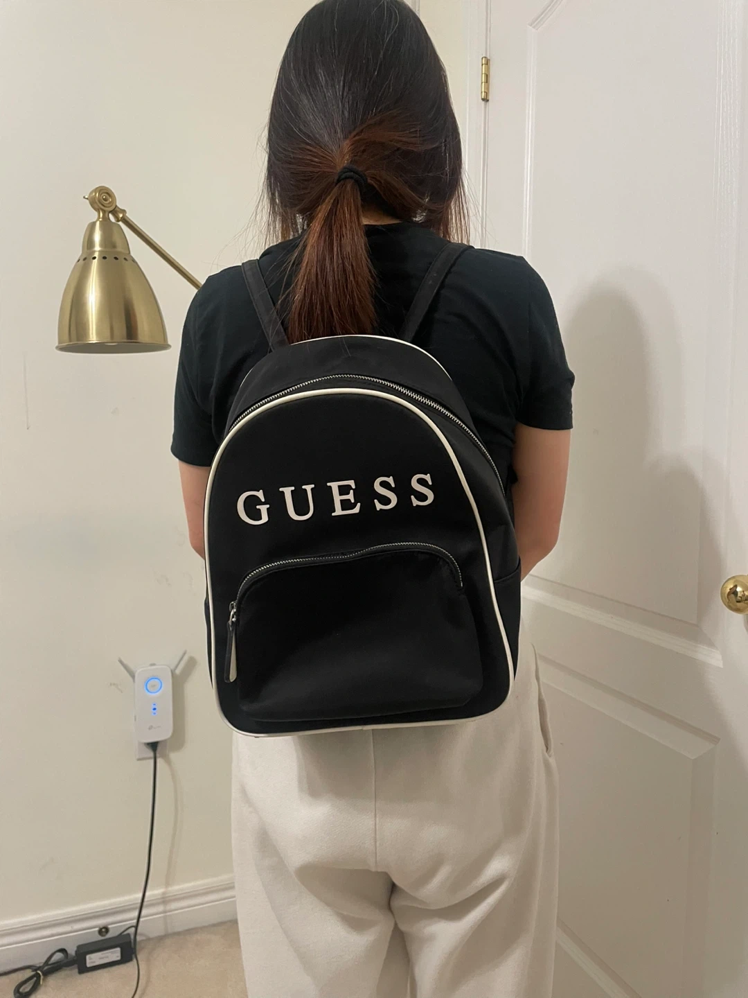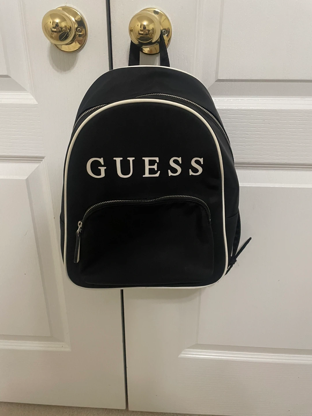 Selling a black Guess backpack in great condition! It's a stylish and functional bag perfect for everyday use. The backpack features the Guess logo prominently on the front. It has adjustable straps for a comfortable fit.