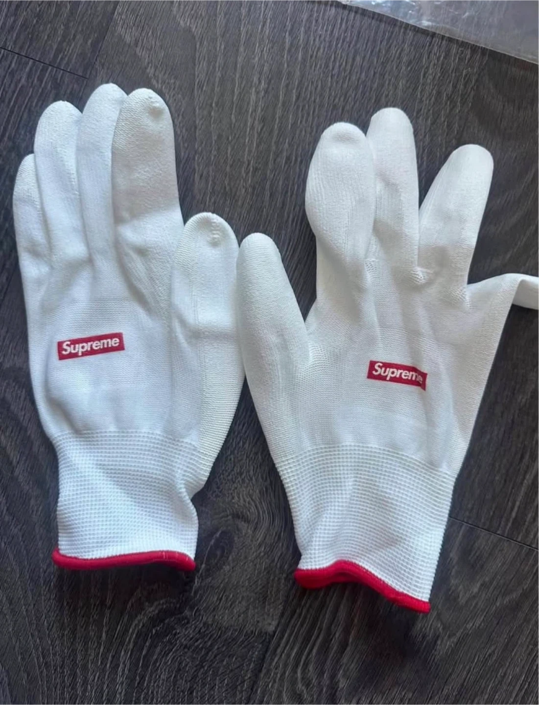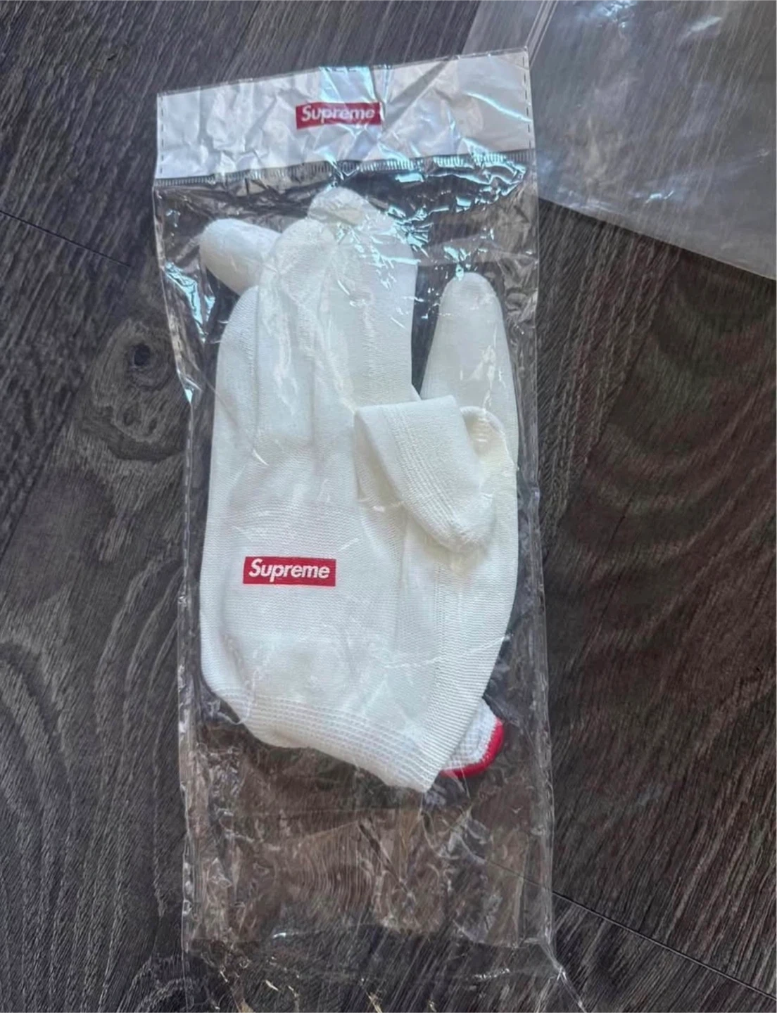 Selling a pair of brand new Supreme work gloves! They are white with the Supreme logo on the back of the hand. Perfect for any job around the house or for adding a little flair to your work gear