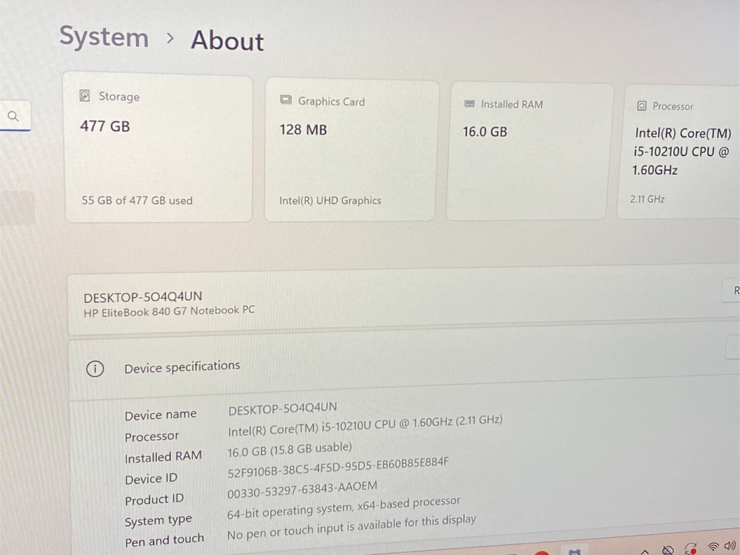 - Intel(R) Core(TM) i5-10210U CPU @ 1.60GHz