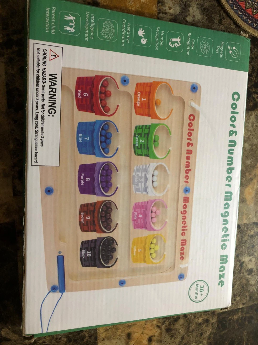 Selling a Color & Number Magnetic Maze, recommended for ages 36 months and up! It's a fun way to help with number and colour recognition. The maze has strong magnets for precise attachment and a portable handle for easy carrying. The main material is wood and the product model is C201. Comes with the original box!
