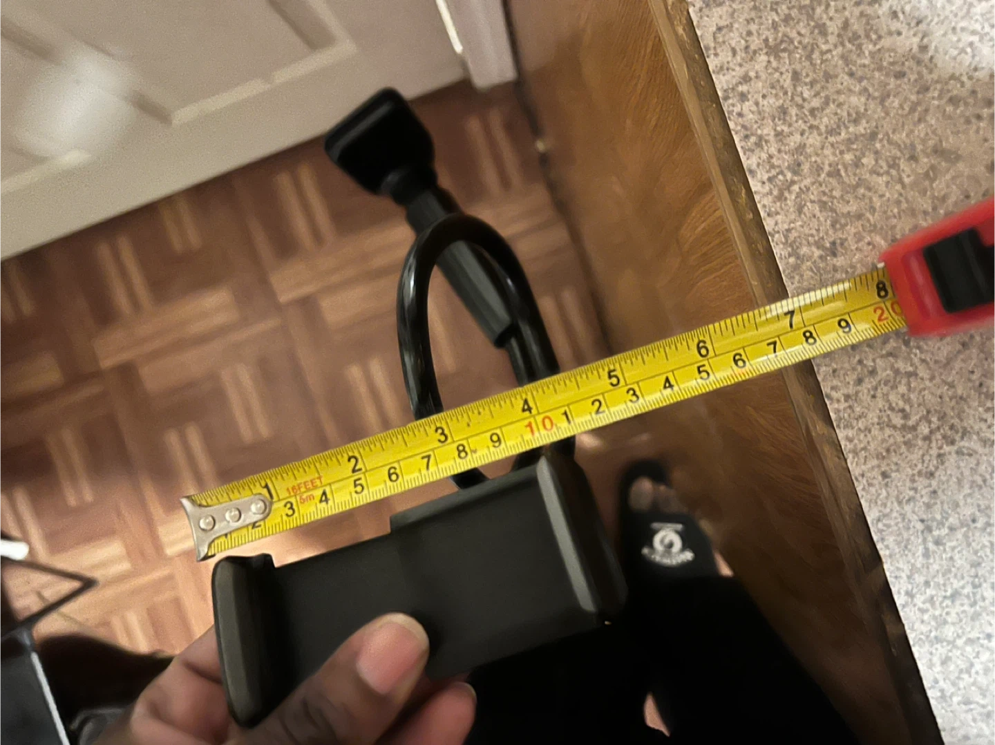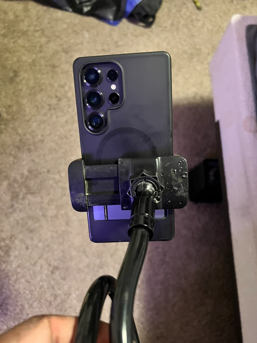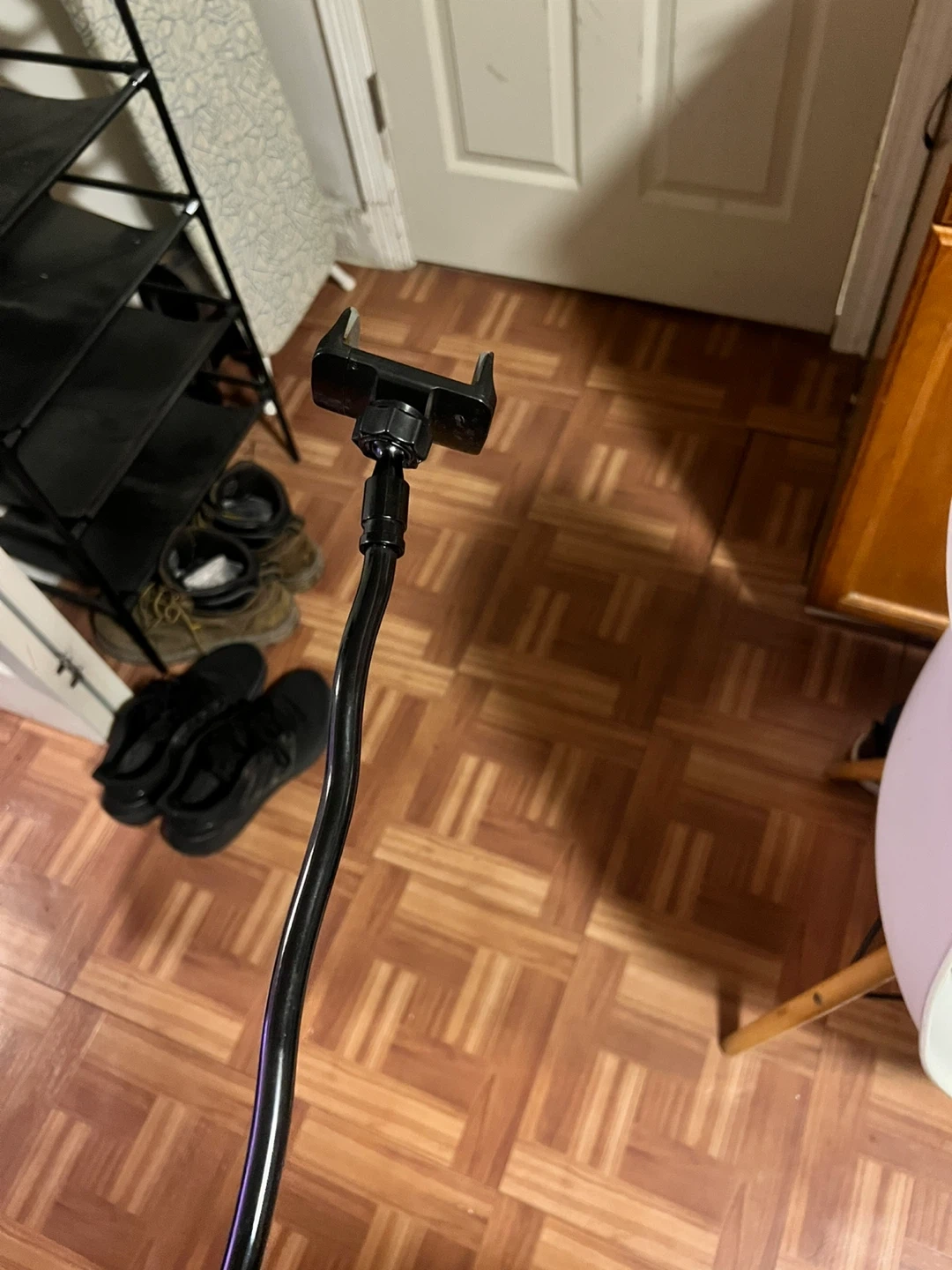 Selling a handy black flexible phone holder! It measures about 3 inches wide, perfect for holding your phone while you're watching videos or video chatting. It's in great condition and ready to use