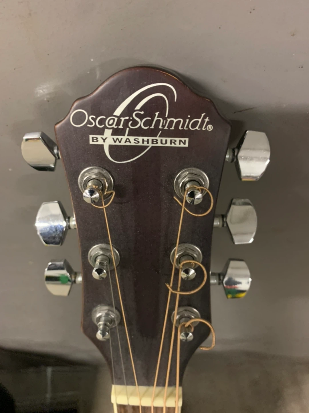 Left handed guitar. Selling an Oscar Schmidt acoustic guitar. It comes with a Profile carrying case. The guitar is in good condition and ready to play!