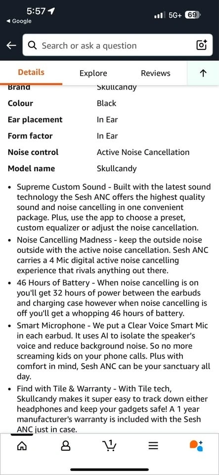 Skullcandy Sesh ANC True Wireless In-Ear Earbuds