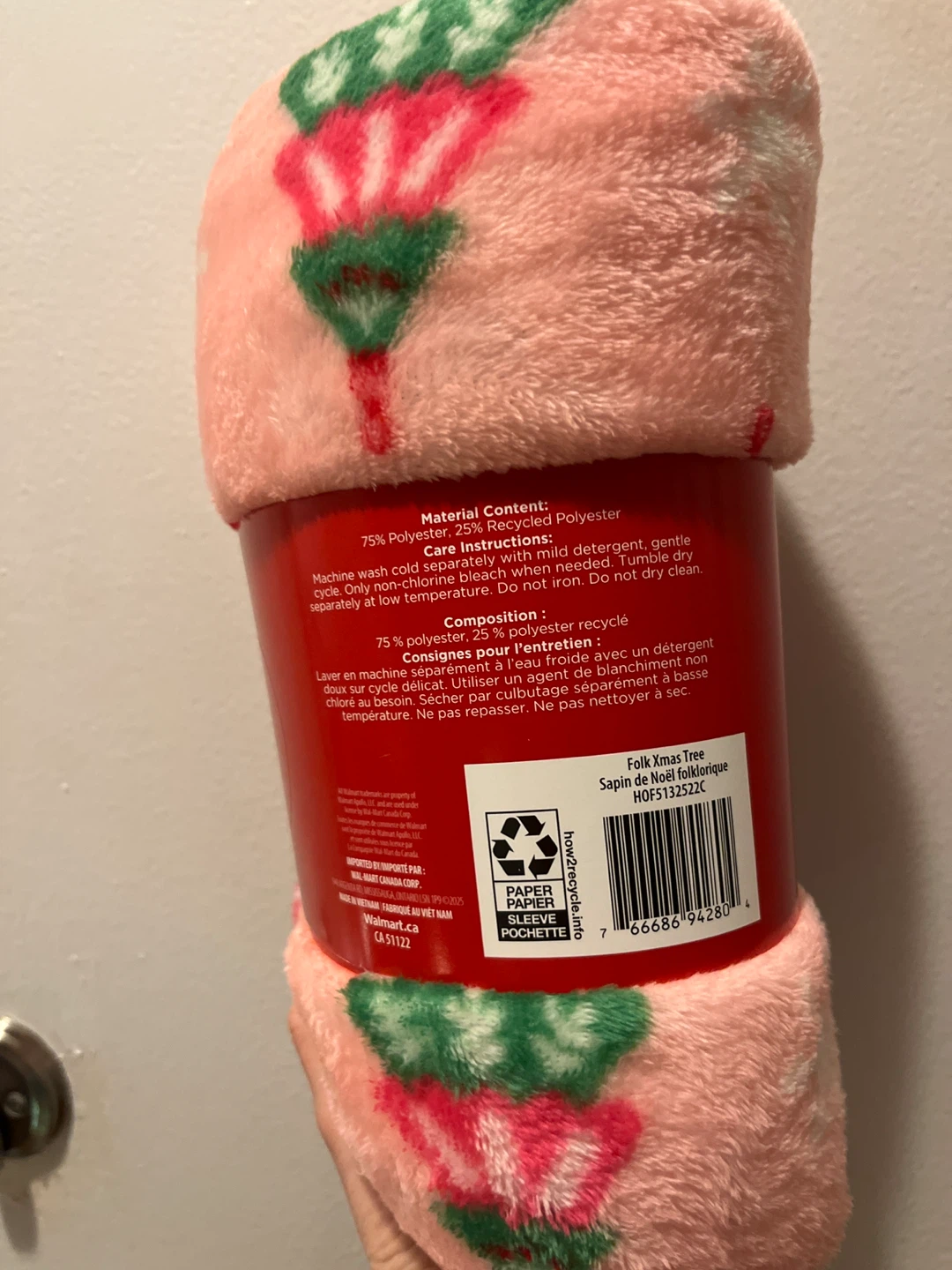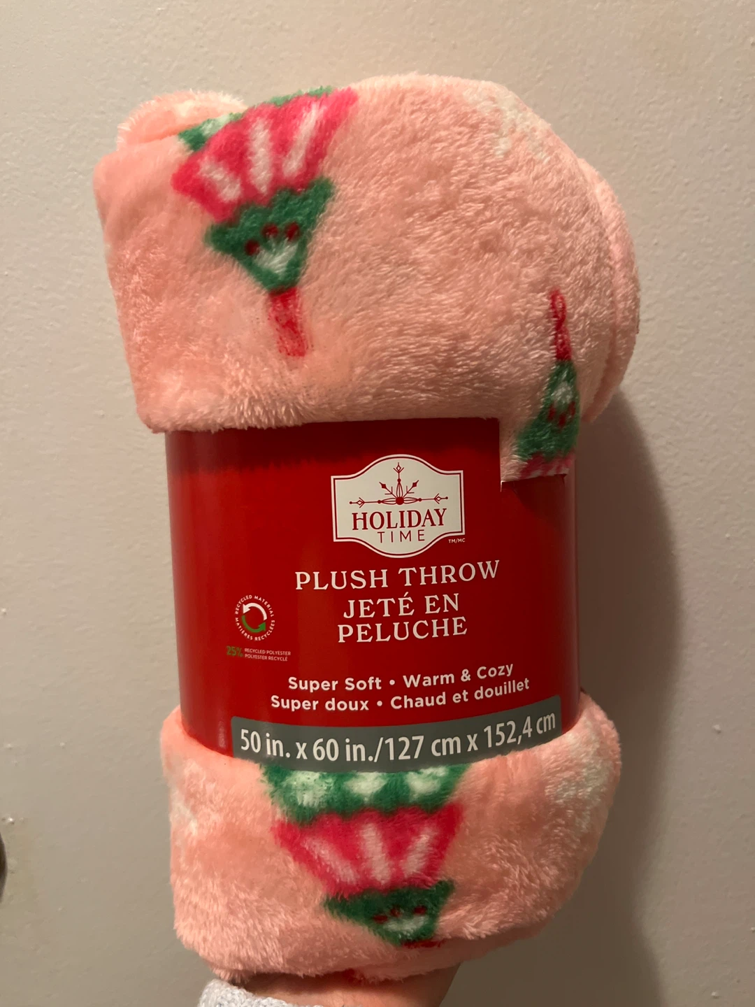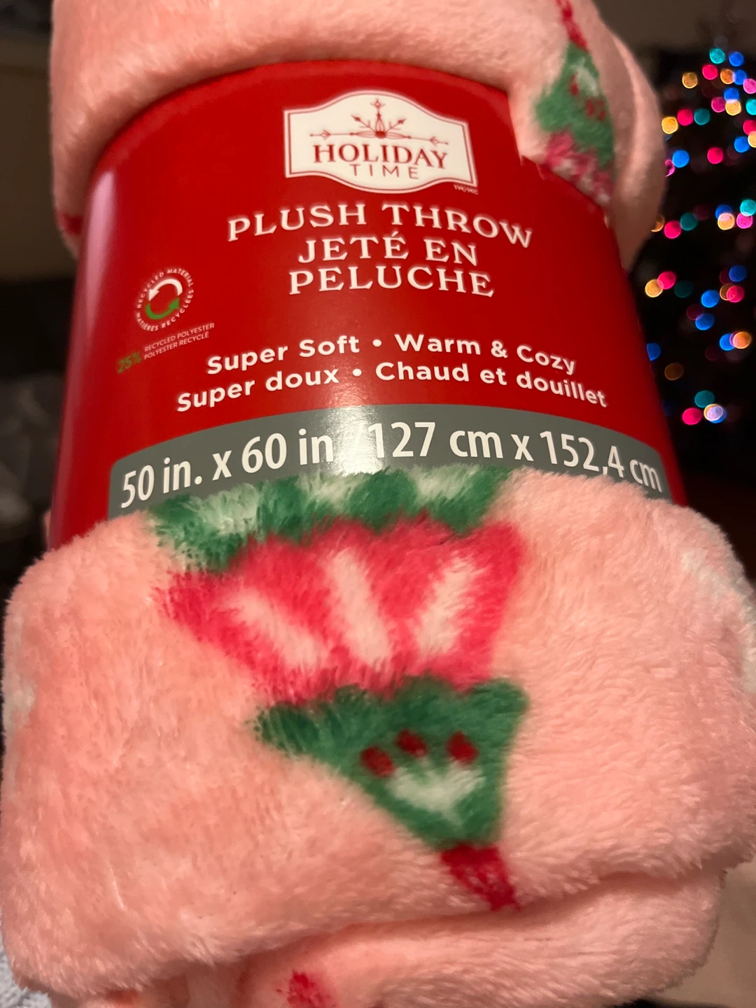 Snuggle up with this Holiday Time plush throw! It's super soft, warm, and cozy, perfect for those chilly evenings. The throw measures 50 inches by 60 inches (127 cm x 152.4 cm) and is made of 75% polyester and 25% recycled polyester.