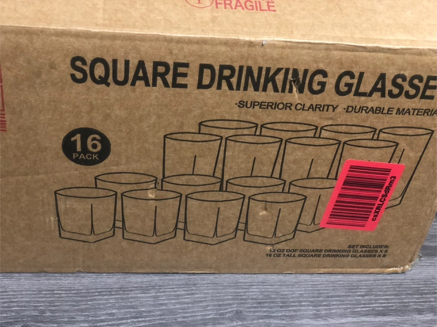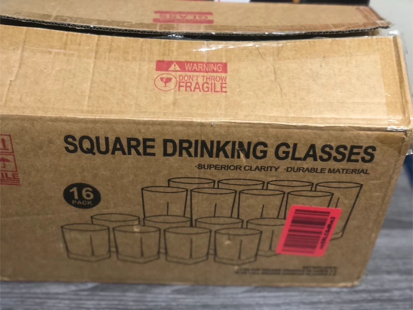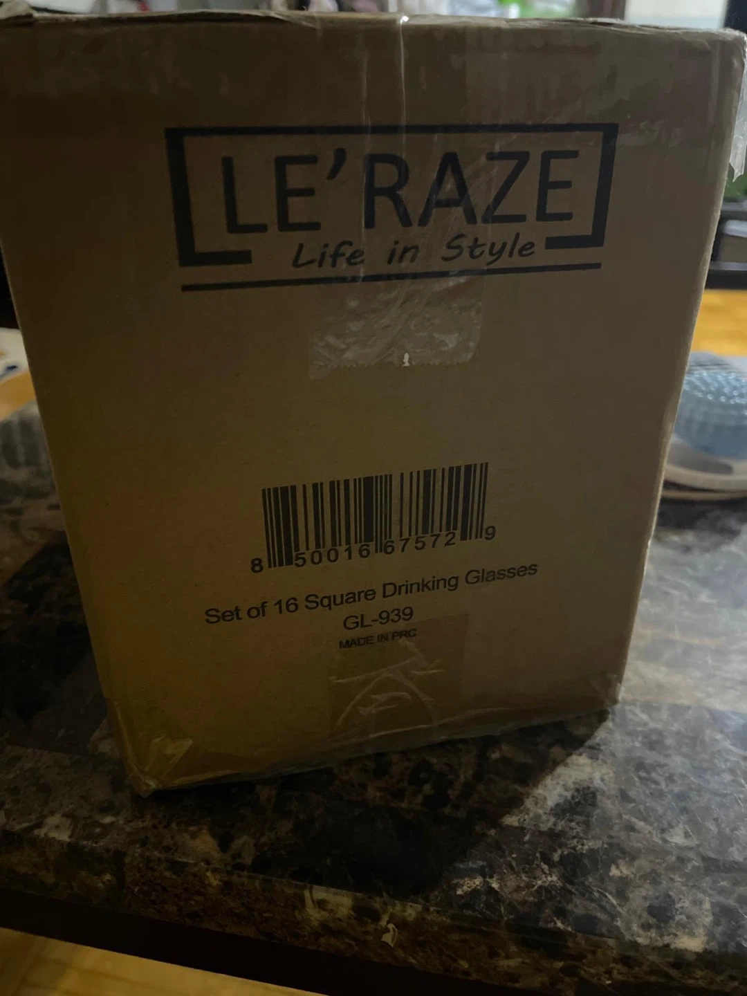 Selling a brand new set of 16 Le'raze square drinking glasses! They're still in the original box, ready for your home!
