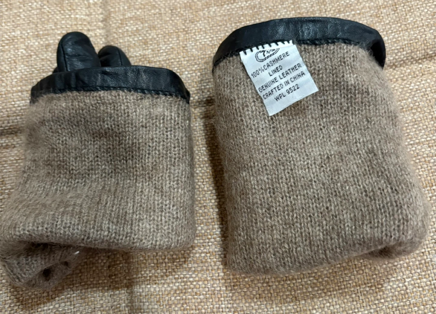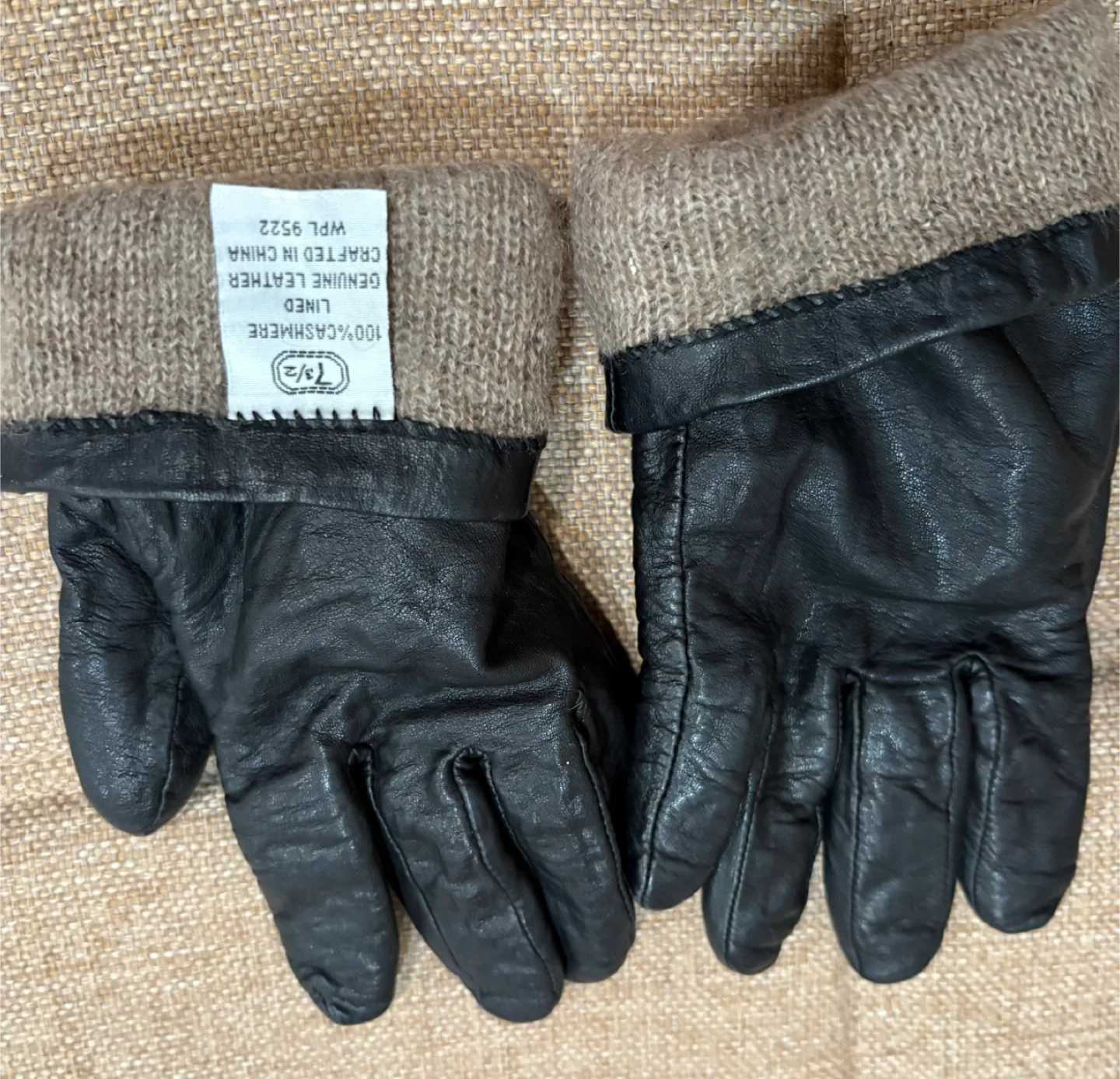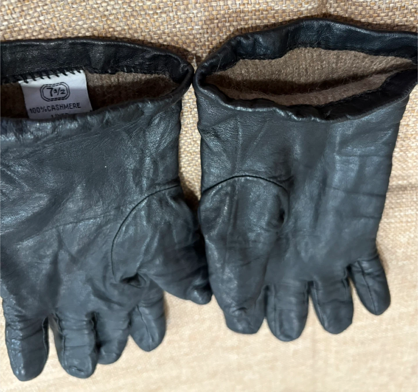 Selling a pair of black Women Leather gloves Cashmere Lined. Very good condition and ready to keep your hands warm!