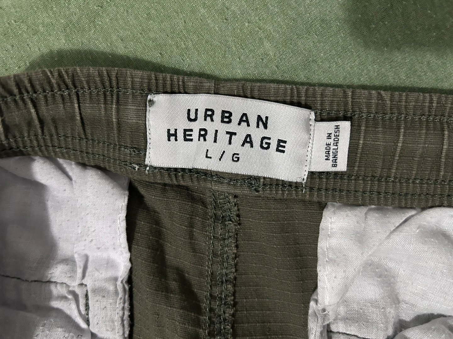 Selling a pair of Urban Heritage cargo shorts in size L/G. They're in great shape and ready for a new owner! The colour is a versatile olive green, perfect for casual wear. Lots of handy pockets too!