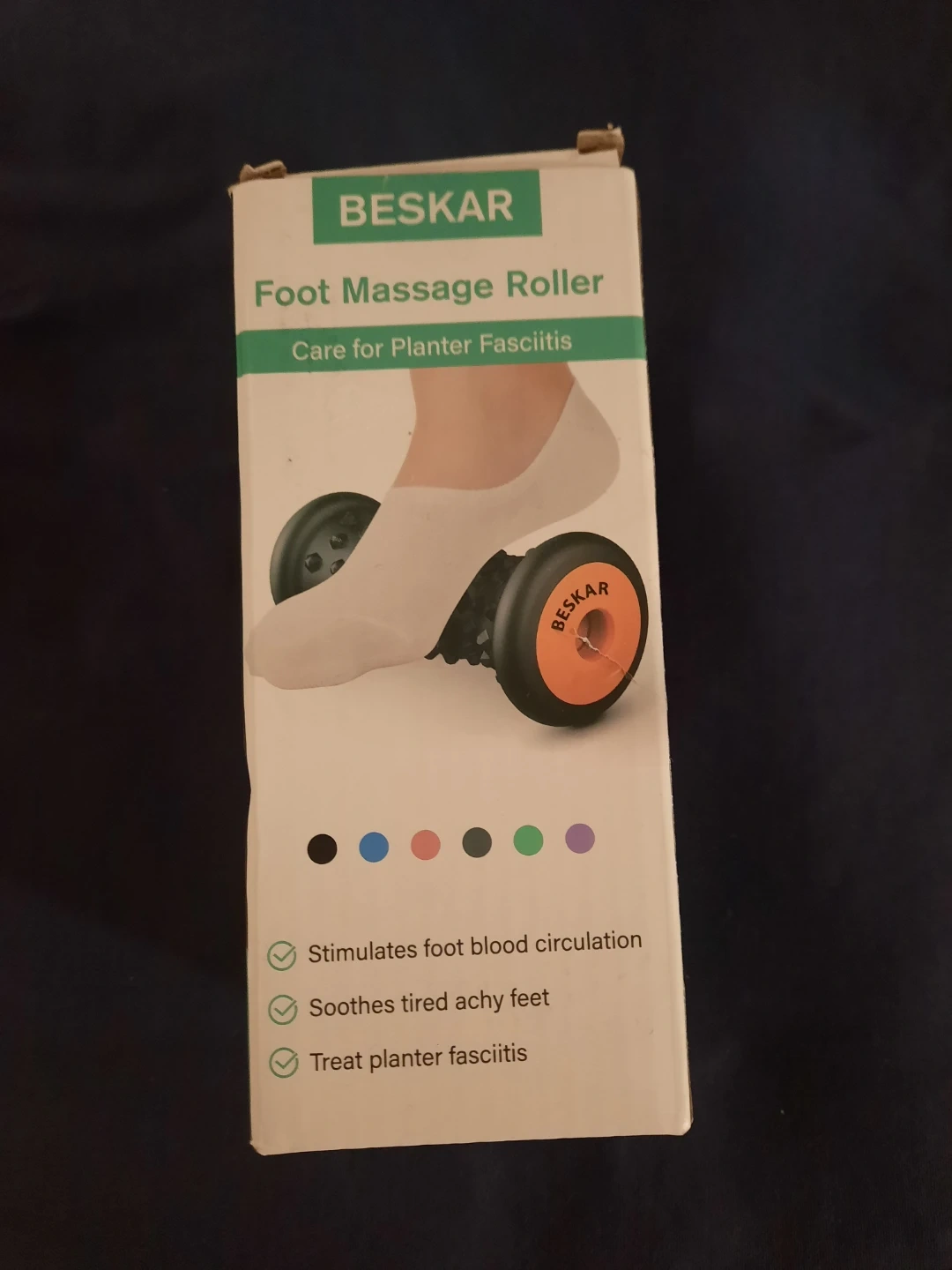I have a new BESKAR foot massage roller still in its original box! It's designed to care for planter fasciitis, stimulate foot blood circulation, and soothe tired, achy feet