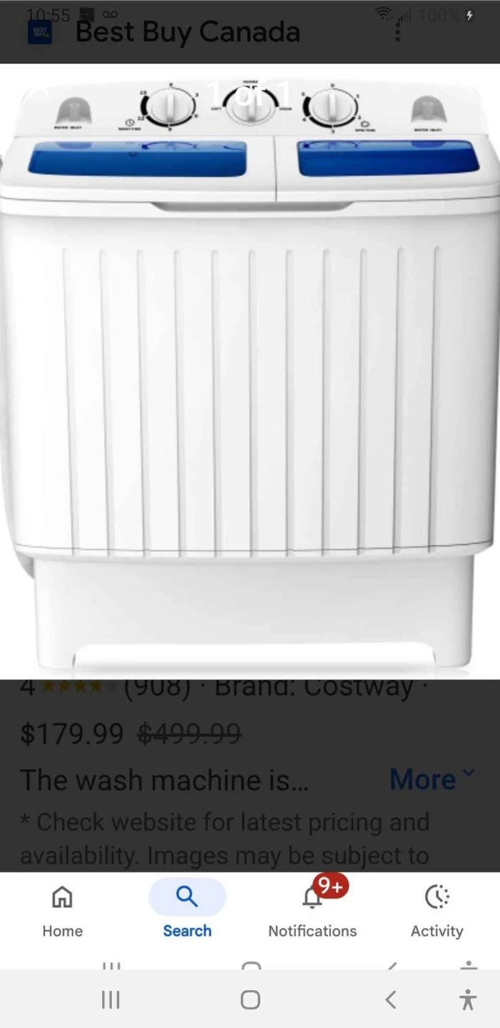 Portable washer dont know brand, will fit in most bathrooms it is very compact, u will with water and it washs and theres a spin dryer as well