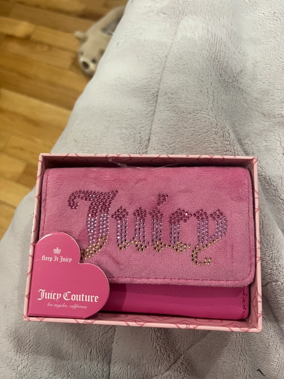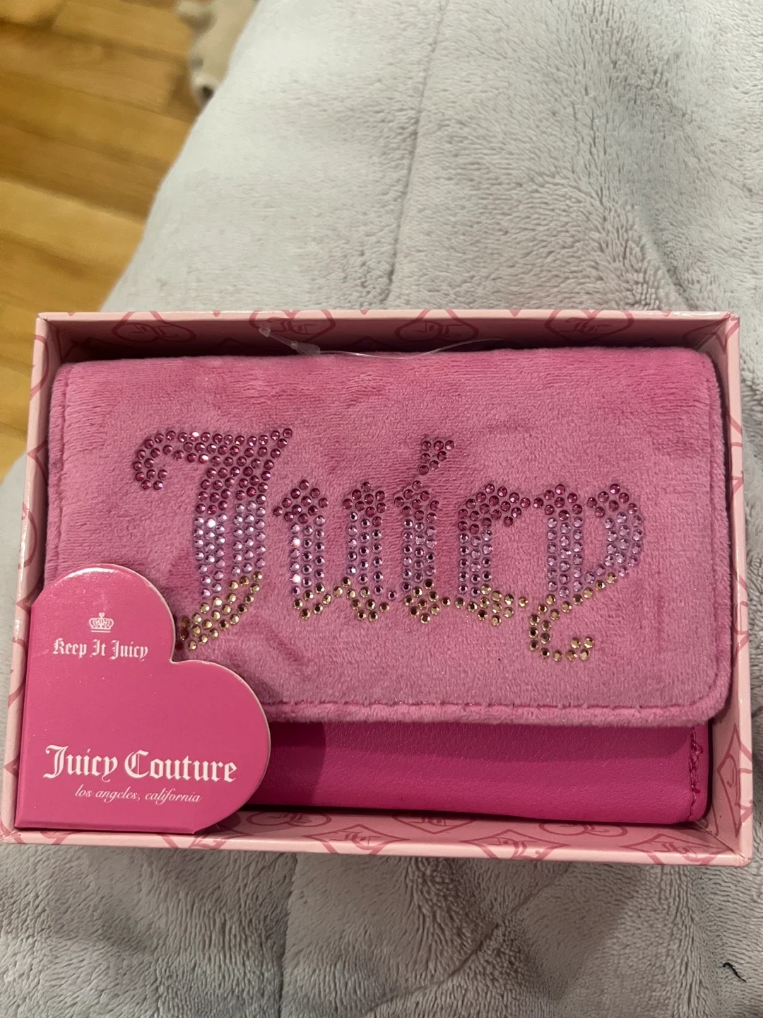 Selling a cute Juicy Couture pink wallet! It comes with its original box. The wallet features the Juicy logo in rhinestones. Perfect for adding a touch of sparkle to your everyday essentials