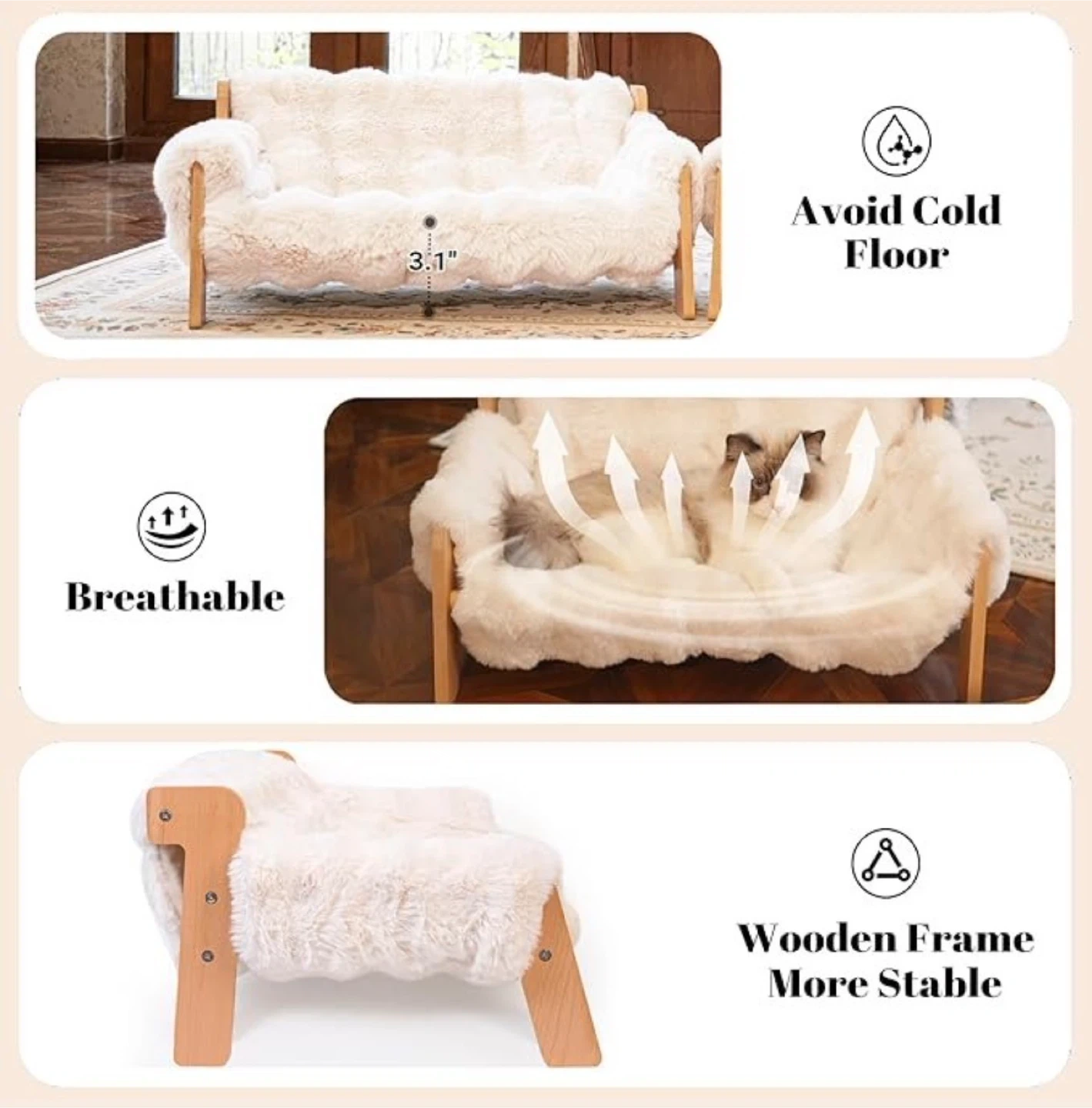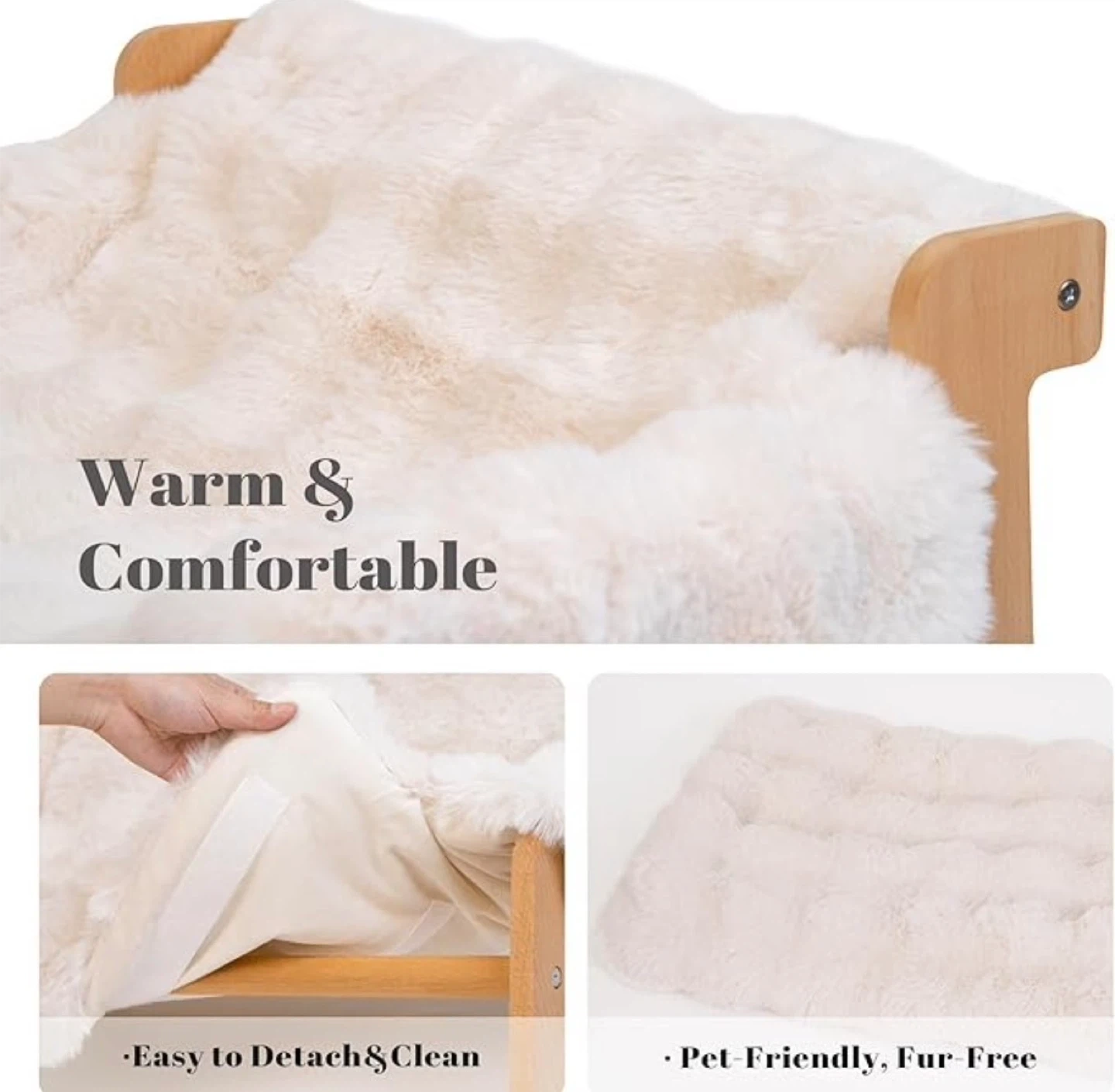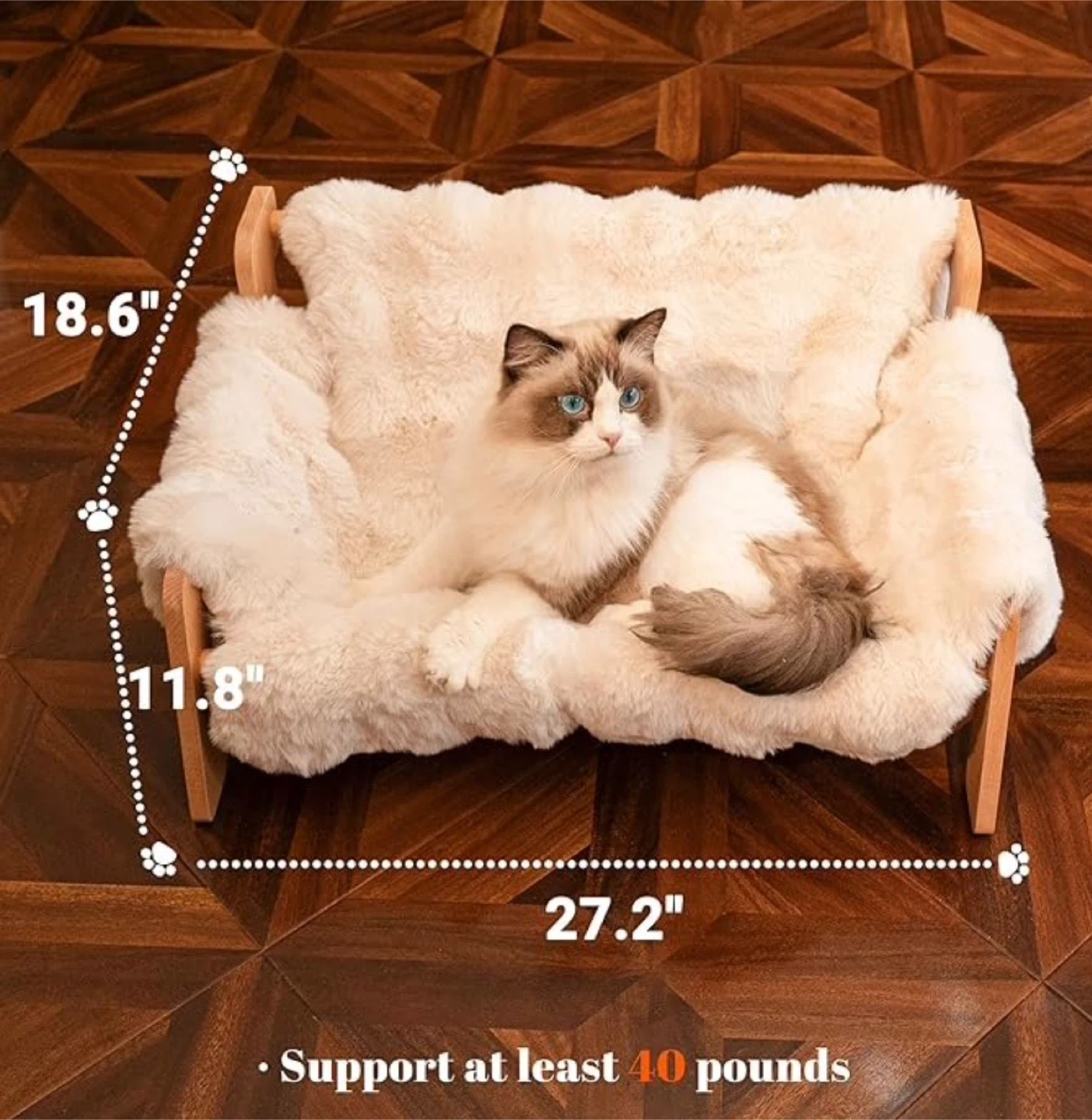 Selling a Cheerble Floor-Standing Cat Bed. It's a new condition and comes with the original box! This cozy bed features a wooden frame and soft, fur-free material that's easy to detach and clean. The breathable design keeps your furry friend comfortable, and it supports up to 40 pounds. Dimensions are 18.6" x 27.2" x 11.8".